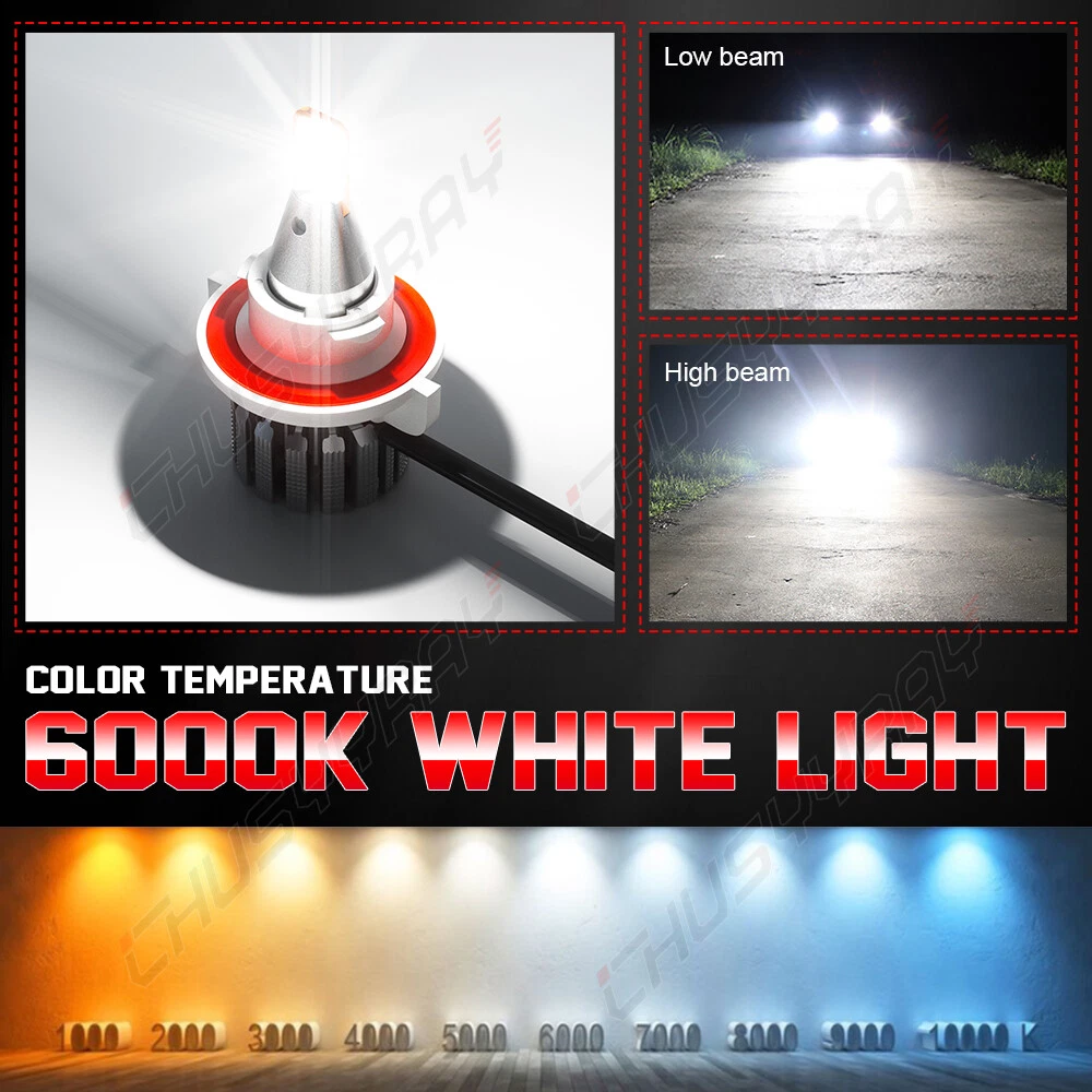 CHUSYYRAY LED Headlight Bulbs 55W 6000LM 6000K High / Low Beam Bulbs Before buying -- Pls pay attention to the size of our LED bulbs. -- Please pay attention to whether the installation location space is enough. -- For some vehicles the following issues may occur if you want to use LED bulb on some vehicles: Hyper Flashing, No Flashing, or Error Code. Those are NOT problems of LED bulb and NOT covered by warranty. You may simply add a set of load resistor (NOT included) to avoid those issues.can be solved with a decoder (decoder must be purchased separately) Selling point: 1. Easy to install, the size is 1:1 with the original car halogen lamp, non-polar design 2. Good light pattern; double-panel design, the light source arrangement is infinitely close to the halogen lamp, the light distribution distance is 1.5mm, and there is no dark area 3. Higher brightness; five times the brightness of the original car 4. External drive, more stable lamp and longer life Specifications: --Plug type: 9008/H13 --Luminous Flux:12,000LM/Pair(6,000LM/bulb) --Condition: 100% Brand New / Never Used --Voltage: DC 9-32V ( Fit 12V,24V Vehicle ) --Color Temperature:6000K White --IP Rate: IP67 --LED type: CSP LEDs --Color Temperature: 6000K-6500K White --Beam Angle: 360° --Operating Temperature: -40 - +105°C --Lifespan: 50,000+ working hours --To Fit: Headlights Kit --Placement on Vehicle: Left,Right,Front --Material: Aluminum alloy --Application: Headlight Parcel Content: - 2 * 9008/H13 LED Headlight - 1 * Packaging Box
