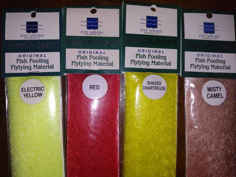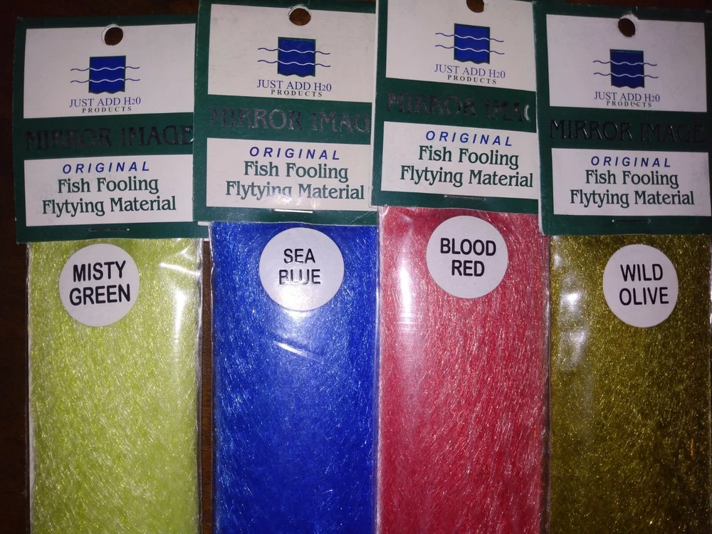 H20 products mirror image excellent material for minnow body's like Enrico puglisi style minnow and bait fish flys. Softer than slinky flash. Excellent for tarpon flies and striper flies. greatfor crab flies too
