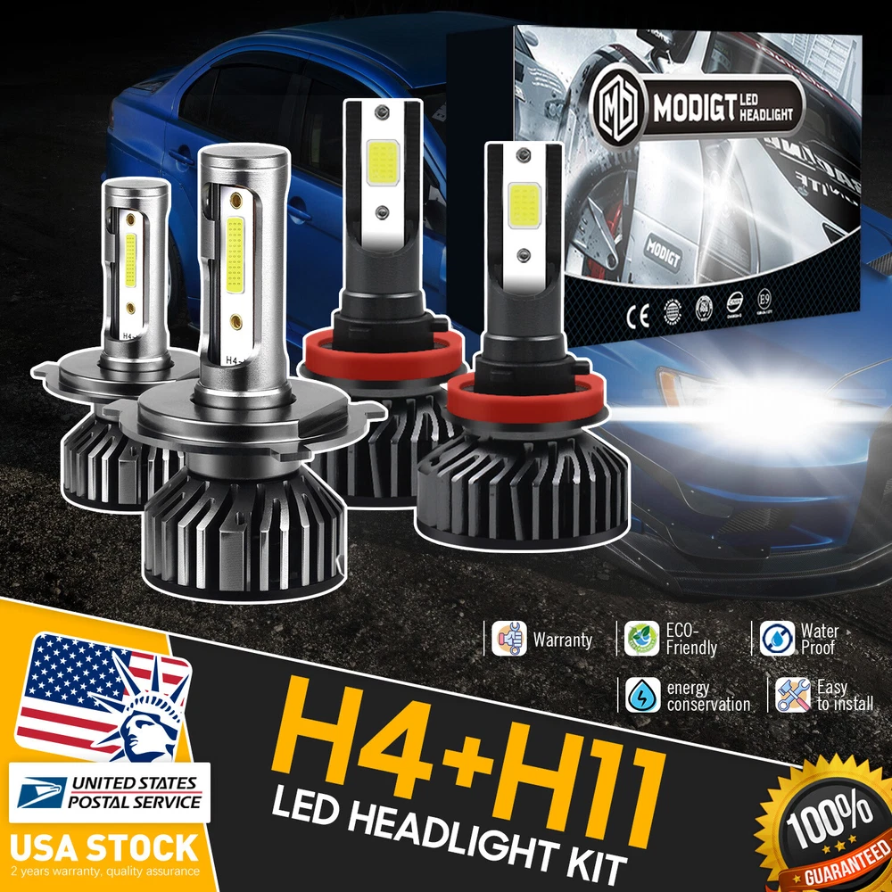 Specification: ❥Condition: 100% Brand New ❥Light Source 1: H4,H11 2 Sides COB Chips LEDs ❥Color Temperature: 6000K White ❥Number of Bulbs: 4 ❥Voltage of H4 Headlight&H11 Fog Light: DC 9-32V(fit 12V,24V vehicles) ❥Wattage of H4 Headlight&H11 Fog Light: 60W/bulb = 120W/ pair ❥Lumens of H4 Headlight&H11 Fog Light: 10000LM/per bulb = 20000LM/a pair bulb ❥Total Wattage: 240W/Set ❥Total Lumens: 20000LM/Set ❥Waterproof Rate: IP68 Water and Dust Seal ❥Working Temperature: -40℃ - +80℃ 1shengmei Best choice of motor parts H4+H11 Beam LED Car Bulbs Headlight Lamp Kit 6000K White 20000LM Super Bright Specification: ❥Condition: 100% Brand New ❥Light Source 1: H4,H11 2 Sides COB Chips LEDs ❥Color Temperature: 6000K White ❥Number of Bulbs: 4 ❥Voltage of H4 Headlight&H11 Fog Light: DC 9-32V(fit 12V,24V vehicles) ❥Wattage of H4 Headlight&H11 Fog Light: 60W/bulb = 120W/ pair ❥Lumens of H4 Headlight&H11 Fog Light: 10000LM/per bulb = 20000LM/a pair bulb ❥Total Wattage: 240W/Set ❥Total Lumens: 20000LM/Set ❥Waterproof Rate: IP68 Water and Dust Seal ❥Working Temperature: -40℃ - +80℃ ❥Bulb Type: H4 Headlight+H11 Fog Light ❥Lifespan: Over 50,000 hours ❥Features : H4 H11 Silent Efficient Cool Fan+Aluminum shell ❥Beam Pattern : 360° Adjustable Packaging includes: 2X H4 (HB2/9003) Headlight LED Bulbs 2X H11 (H9/H8) Fog Light LED Bulbs Installation Instructions: Automotive LED headlamps advantages: ❥ 1. LED lights than traditional halogen energy, more power. ❥ 2. Xenon lamp brightness and proximity , but the LED lights light up without delay, to enhance road safety. Instant start no strong currents impact , effectively protecting the car comes with a battery , improving battery life of more than 30%. ❥ 3. Fast cooling , the appearance of the most advanced design , thermal structure ingenious and reasonable.Less warranty, power driver with wide voltage constant current mode , the car can respond to a variety of voltage instability , the effective protection of normal use Led efficient and simple structure . Fewer Components damaged, repair the probability is very low , compared with HID ballast repair lower than 80% . ❥ 4. Heating temperature is low , protect the car . Xenon working temperature up to 800 ° -1000 ° , the main reason for the car ignition . ❥ 5. LED car headlights simple structure, fewer parts than xenon lamps, significantly lower than the xenon lamp failure rates ! ❥ 6. Automotive LED headlamps color temperature balancing. The Xenon bulbs in the same color to clear , about 6000K. ❥ 7. H4 Headlight +H11 Fog Light Latest COB Chips LED light source,super bright without blind zone. Nots: ❥ For some vehicles, it may require install decoder or load resistor to avoid error message, turn signal hyper flash or fast blinking. ❥ This lisiting do not included bulb holders, some of the car need add bulb holder to get the LED bulbs replace the halogen bulbs. ❥Please check whether it is fit your vehicle before purchase. ❥The compatibility table is only for reference, please make sure to verify the bulb type of your vehicle before purchasing. We are happy to help if you need any further information. Item Specifics Brand MGT Lighting Technology LED Suitable For Headlight, High Beam, Low Beam,Fog light Bulb Fitment Code H4/HB2/9003 And H11/H9/H8 Number of Bulbs 4 Light Color White Type Light Bulb Beam Pattern 360° Adjustable Other Part Number H4 Headlight, H11 Fog Light Voltage of H4 Headlight&H11 Fog Light DC 9-32V(fit 12V,24V vehicles) Color Temperature 6000K Sealed Housing Dustproof and Waterproof Lumens of H4 Headlight&H11 Fog Light 10000LM/per bulb = 20000LM/a pair bulb Total Wattage 240W/Set Total Lumens 20000LM/Set Superseded Part Number Replacement Halogen Xenon HID Conversion Lamp Model H4,HB2,9003,H11,H9,H8 Manufacturer Warranty 2 Years Features1 LED Light Features2 COB Chips, Brightness Improved Features3 Perfect Beam, No Dark Spots Features4 Silent Efficient Cool Fan,Aluminum shell Lighting Type Specialty Head Light Bulb OE/OEM Part Number 1 H4,HB2,9003 OE/OEM Part Number 2 H11,H9,H8 Bulb Type COB combo LED Connector Type To Fit Headlight/Fog light/High Beam/Low Beam To Fit 1 Motorcycle,Motorbike,Bike,Car,Van,Truck,Pickup To Fit 2 SUV,Bus,Off-road,ATV,Wagon,UTB,Forklift Operating Temperature -40-80 degree Celsius Beam Angle 360°, COB combo LED Payment 1. It will be much appreciated that you finish your payment asap or it will make UPI (unpaid item case) on your account leading to be suspended or restricted by eBay when those UPI cases carry over to certain amount. 2. Any problems please contact us for more details. Shipping 1. All items will be shipped to buyer's ebay address. 2. All items will be shipped within 24-48 working hours upon receipt of payment, and multiple items will be combined shipping. 3. In most cases, delivery takes around 3-5 business days, it's highly depended on the efficiency of the shpping carrier. If your item doesn't arrive on time, please contact us immediately for further assistance. Please note there is no local pickup service available. Returns If you are not 100% satisfied with your purchase, you can return the product and get a full refund or exchange the product for another one. Please Note: Please write us a message before your return, otherwise we will not accept the package. Any product you return must be in the same condition you received it and in the original packaging. Contact Us 1. We care about our valued buyers, if you have any questions, our Customer Service staff will be very glad to help you. We try our best to reply your contact as soon as possible, please kindly allow 24 hours for us to response. 2. Our goal is to make sure you are a happy buyer and pleasant shopping with us. Please contact us before leaving any 1 or 2 star ratings, negative feedback or open any dispute. We understand the concerns and frustrations you might have, and will do our endeavor to resolve the issues.