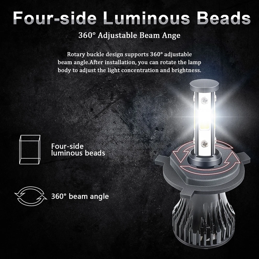 Product Advantages: Type: H4 9003 + T10 501 LED Light Interchange Part Number: Use for high Beam, Low Beam, DRL or Fog Lights… LED Type: 4Pcs Led Chips Each Bulb Other Part Number: 6000K-6500K(Xenon HID Pure White) Head Light Lamp Bulbs Beam Angle: 360 Degrees Placement on Vehicle: Left, Right, Front Heat Control: Aluminum shell base including Turbo cool fan Color: 6000K-6500K(Pure White Color) Condition: 100%Brand New/ Never Used Need additional Parts or Modification? 100% Integrated Design, Plug and Play. (Few vehicles may require load resistors to stop flickering or fix error message) Package include: 2X H4 9003 LED Light 2X T10 501 LED Light Features: 1.Each Bulb have 4 sides of Super Bright LED Chips 2.Complete Kit: No Other Ballast/Driver Required Just Plug and Play - Newest Technology 3.Beam Angel: 360 Degrees 4.Color Temperature: 6000K-6500K Pure White 5.Smart Efficient Cooling System, Built-In Cooling Fans For Fast Heat Dissipation 6.High quality Aluminum heat dissipation ensures the secure temperature range 7.Low Power Consumption than Halogen bulb or Hid Kit, Energy Saving 8.Low Voltage Protection, High Precision Constant Current driver Chip 9.Shakeproof and Long lasting up to 50,000 Hours. 10.Easy installation, Plug and Play, NO modification required 11.Operating Temperature: -40°C ~ +80°C Automotive LED headlamps advantages: 1. LED lights than traditional halogen energy, more power. 2. Xenon lamp brightness and proximity , but the LED lights light up without delay, to enhance road safety. Instant start no strong currents impact , effectively protecting the car comes with a battery , improving battery life of more than 30%. 3. Fast cooling , the appearance of the most advanced design , thermal structure ingenious and reasonable. Less warranty, power driver with wide voltage constant current mode , the car can respond to a variety of voltage instability , the effective protection of normal use Led efficient and simple structure . Fewer Components damaged, repair the probability is very low , compared with HID ballast repair lower than 80% . 4. Heating temperature is low , protect the car . Xenon working temperature up to 800 ° -1000 ° , the main reason for the car ignition . 5. LED car headlights simple structure, fewer parts than xenon lamps, significantly lower than the xenon lamp failure rates ! 6. Automotive LED headlamps color temperature balancing. The Xenon bulbs in the same color to clear , about 6000K-6500K. Install Caution 1. As a safety precaution, make sure that the car has had time to cool down properly before starting the installation process. 2. Put the vehicle into park or make sure it is securely in gear. 3. Make sure to have the ignition turned off and the keys removed. 4. Be careful to avoid burns, especially when turning on or off the vehicles lighting. 5. Be careful to avoid crushing or cutting the bulbs. Also make sure to not touch the bulbs with your fingers, as this will cause blotting. 6. Fully examine the connection of the contact points, ports and the wires as faulty connections can cause lighting problems. 7. Make certain that the end of the bulb does not come in contact with the interior light shield of the headlight when adjusting the bulb. Returns Policy: 1. Customer satisfaction is our top goal. We believe our items are so outstanding. All products are quality checked. They are new and in good condition when shipped to our customers. We are convinced you will be happy with your Purchase. 2. If product is defective or damage upon arrival, or wrong product shipped, please contact us immediately. Returns accepted within 14 days of delivery date and item must be in original new condition, not worn or altered in any way with attached tags & wrap. Otherwise deal is final. Return shipping must be paid by buyer. 3. Please contact us first if you have any problems/questions/concerns. We will be happy to resolve any issues you may have in a cordial and friendly manner. 4. We appreciate your Postive Feedback, and will do the same in return. DO NOT leave negative feedback without first communication with us. Please allow max 2 business days for us to response. On 02/12/2024 at 13:37:58 AEDT, seller added the following information: