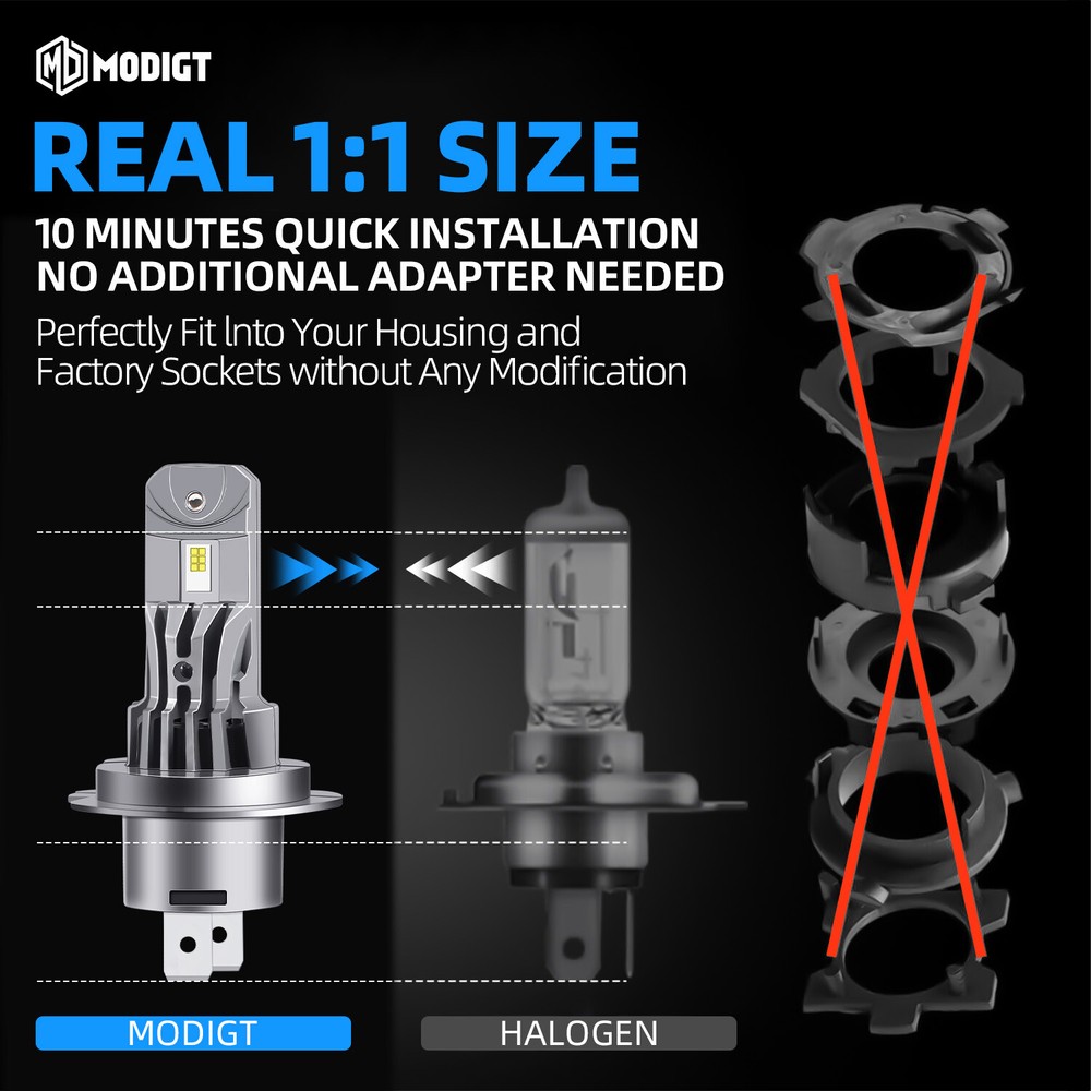 H7 Modigt LED Headlight Bulbs 8000lm High Beam 6000K Cool White Bright Lamp Kit