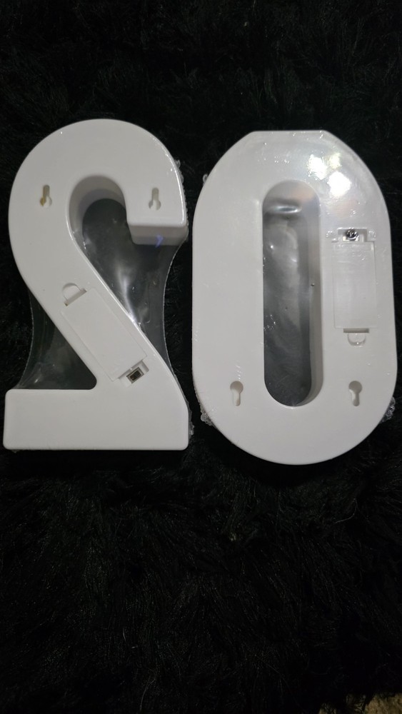 This product is a set of light-up numbers that spell out "20" in a contemporary style, perfect for party decorations. The numbers are made of plastic and emit a bright light, adding a festive touch to any occasion. The solid white color and sleek design make them a versatile option for all types of events, including birthdays and other celebrations. These props are sure to add a touch of sparkle to your party decor. Fast shipping!