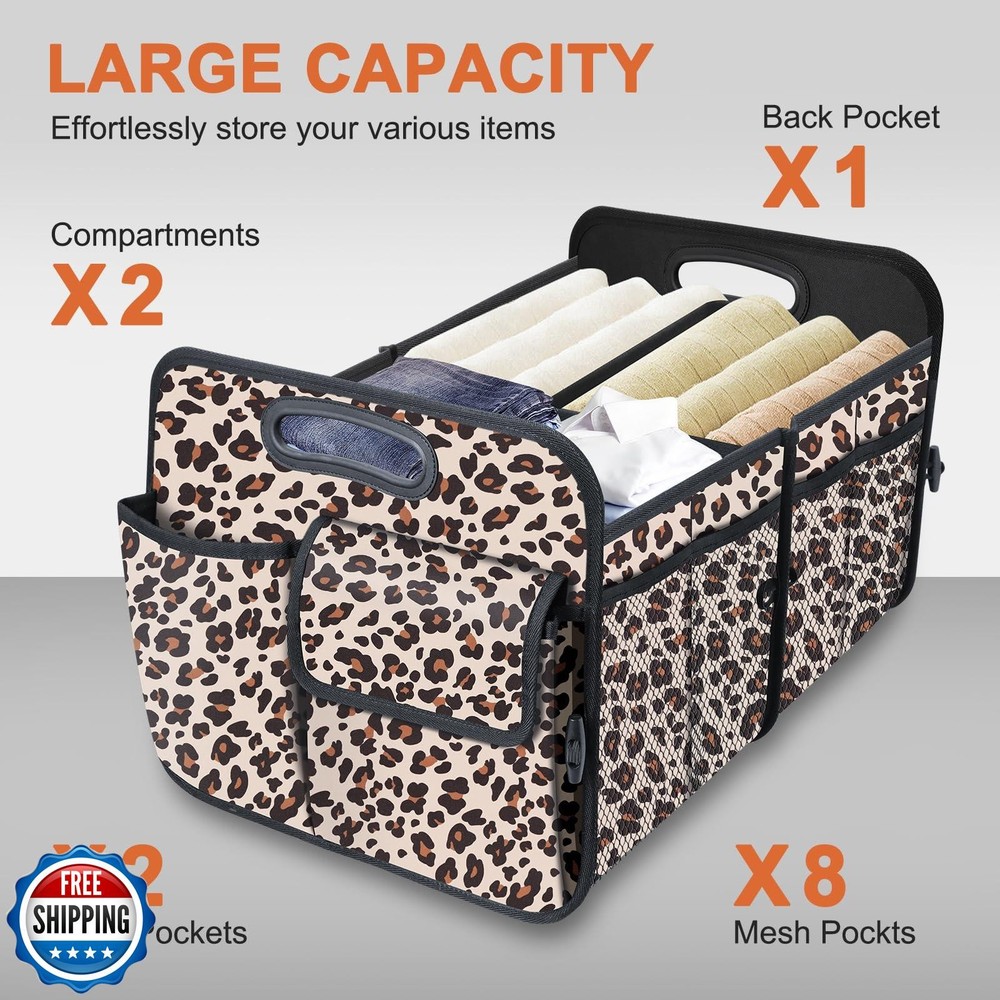 HABOPET Trunk Organizer, Collapsible Trunk Organizers and Storage, Car Accessories for Women and Men, Multi-Compartment Trunk Storage Organizer for SUV, Car, Mini-Van, Leopard Print Features Large Capacity: HABOPET Trunk Organizer has 72L capacity with 11 multiple storage pockets, and compartments with adjustable padded divider panels keep items upright. Great for groceries, sports gear, tools, emergency kits, and more. Foldable Car Organizer: Collapsible car organizers and storage space-saving design folds up when not in use, and easy to install and secure in car trunk, back seat, or floor. Multi-Purpos: This car storage organizer is a good home helper, it can be toy organizer, cloth organizer, book organizer, also can be a great partner as car accessories for men and women, it can be a car trunk organizer for suv,trucks, vans and more. Waterproof & Durable:Our car organizer trunk made of waterproof and durable oxford.The water-resistant exterior keeps your contents protected from wet gear.With its sturdy yet flexible construction, this car trunk organizer retains its shape when packed to the brim. Unique Design: The car accessories organizer with reinforced handles for easy carrying and protect your hand in safe, buttom with non-silp velcro strips can grip the surface of trunk to prevent sliding when drving. Shipping Free & Fast Shipping: We offer free shipping to most of the USA with a normal delivery time of 3-7 days. However, due to the current situation, additional delivery time (up to 3 weeks) may be required for some items. Alternative Carriers: We may use alternative carriers (e.g., USPS, FedEx, UPS) to ensure your package arrives safely and on time. Due to the use of multiple carriers, we are unable to provide a tracking number automatically. Handling Time: Orders are processed and shipped within 1-2 business days of receiving cleared payment. Shipping Restrictions: Shipping to Alaska, Hawaii, Puerto Rico, Guam, and other US territories may incur shipping charges or delivery restrictions. Please contact us before ordering, or your order can be refunded/cancelled. State Restrictions: Certain items may not be shipped to California due to state regulations. Contact for Tracking Updates: If you require tracking updates or have any concerns about the delivery of your order, please feel free to contact us, and we will be happy to assist you. Return Policy 30-Day Hassle-Free Returns: If you are not completely satisfied with your purchase, you can return the item for free within 30 days of receiving it for a full refund or exchange. Easy Return Process: Contact us, and we will provide you with a prepaid return shipping label and detailed instructions. No Restocking Fee: There are no restocking fees for returns. However, the buyer is responsible for return shipping costs if the return is not due to a seller"s error. Refund Processing: Refunds will be processed within 1 business day of receiving the returned item in its original condition. Feedback Your feedback is extremely important to us. We strive to provide the best products and customer service possible. If you are satisfied with your purchase, please take a moment to leave us a positive review. If you have any concerns or issues with your order, please contact us before leaving negative feedback. We are committed to resolving any problems and ensuring your satisfaction. Contact Us If you have any questions or concerns, please feel free to reach out to our customer support team. You can contact us through the eBay messaging system. We are available Monday to Friday, 9:00 am to 5:00 pm EST, and we will do our best to respond to your inquiry within 24 hours. Thank you for supporting our small family business!