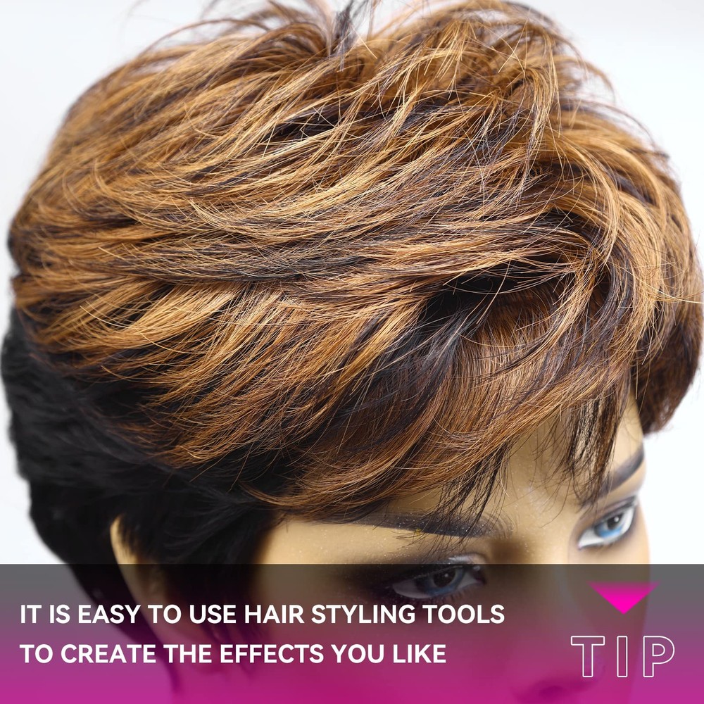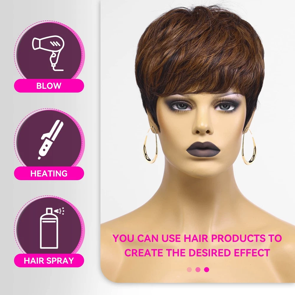 Material: Made of 100% human hair< Br>- Color: As shown in the picture - Hair style: Long hair - Brand: HAIRCUBE - Package includes: 1 wig, 1 wig cap, - You can curl or straighten the wig to change its appearance. A hairdresser can cut or trim the entire wig. - wig color: as shown in the picture - wig style: don't let style limit your beauty, try it boldly, and I will bear the cost of trial and error for you (30 days no reason to return or exchange) Hair Material: This Pixie cut is made of 100% human hair, soft, comfortable, and easy to take care of. Hair style: Short hair is neat and generous, refreshing and not stuffy, and avoids the disadvantage of long hair being prone to knots. Short, fluffy hair with layered textures can better enhance your face shape. Wig color: 1B mixed with brown, calm and nurturing Hair cap: 21.5 to 23.5 inches, adjustable elastic band, suitable for most people's head circumference size. Lace mesh is breathable and comfortable, not stuffy. Perfect Service:If you have any questions about this wig, please feel relaxed to contact us to help you solve the problem. Don't feel that it is troublesome.We welcome your questions and are happy to help you. Your questions are the motivation for us to do better. Thank you!