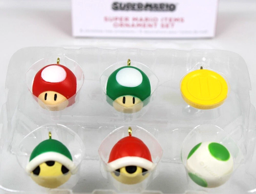 HALLMARK 2022 SUPER MARIO ICON ITEMS MINIATURE CHRISTMAS ORNAMENTS SET OF 6 NEW HALLMARK SUPER MARIO ITEMS KEEPSAKE MINIATURE ORNAMENT SET INCLUDES 6 ICONS, RED AND GREEN MUSHROOMS, RED AND GREEN SHELLS A YOSHI EGG AND A GOLD COIN NEW NEVER DISPLAYED, ONLY REMOVED TO PHOTOGRAPH AND INSPECT HALLMARK NINTENDO FUN, AWESOME VIDEO GAME COLLECTIBLE ✨✨✨✨✨ GREAT DESIGN AND DETAIL✨ WOULD MAKE A GREAT GIFT ADD TO YOUR COLLECTION Will ship to you with great care. Will ship to the United States and Protectorates via USPS International shipments will ship via Ebay's Global Shipping Program (GSP) International packages will ship within one business day to eBay's GSP. eBay's GSP will then ship the package internationally. Handling and Shipping times may vary with GSP. Brought to you by The VinKris Collection