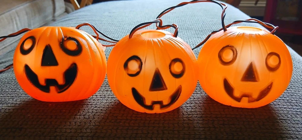 Up For Auction.... * Vintage 1960's string lights. * PEERLESS blowmold pumpkin lites with tag on line. * Really nice, solid color pumpkins with no damage. Electrical is solid and in working order. * This is a great vintage Halloween find! I will combine shipping on this item to save postage costs. Check the dropdown on postage to see the shipping services I offer. If you have any questions, please ask PRIOR to bidding. Sorry, no returns. All shipping costs are actual and not inflated.