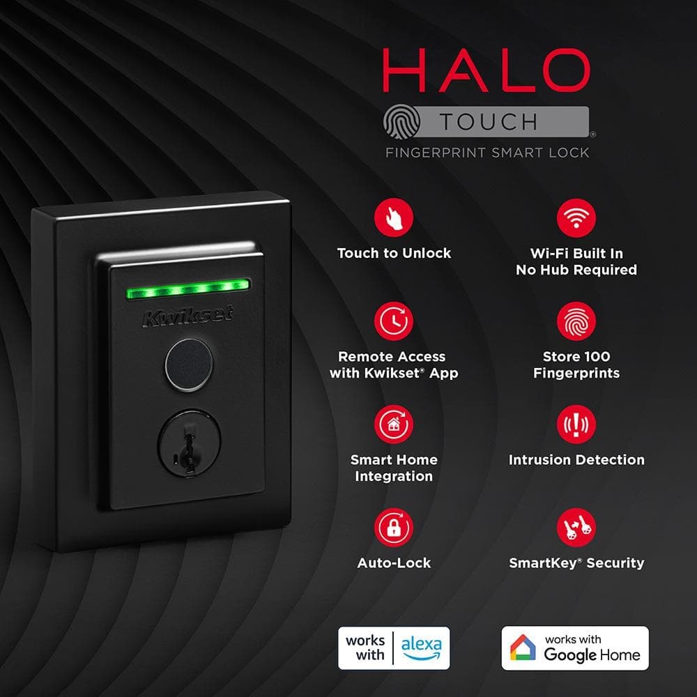 HALO Touch Matte Black Contemporary Fingerprint WiFi Electronic Smart Lock Deadbolt Featuring SmartKey Security Electronic Deadbolts Control anywhere with app or with Alexa and Google Home Control through home integrated Wifi; No smart home hub required Patented SmartKey technology allows you to rekey lock in seconds The Halo Touch fingerprint smart lock is a keyless entry electronic deadbolt which allows you to simply use your unique fingerprint to lock and unlock your door. Halo Touch has Wi-Fi built-in that connects directly to your home Wi-Fi network and smartphone for a secure smart home that does not require a third party smart home hub, panel or subscription. With up to 100 fingerprints (50 users), you can give access to your family and friends ... Urintelligentbi Hello, respected customer HALO Touch Matte Black Contemporary Fingerprint WiFi Electronic Smart Lock Dea HALO Touch Matte Black Contemporary Fingerprint WiFi Electronic Smart Lock Deadbolt Featuring SmartKey Security Electronic Deadbolts Control anywhere with app or with Alexa and Google Home Control through home integrated Wifi; No smart home hub required Patented SmartKey technology allows you to rekey lock in seconds The Halo Touch fingerprint smart lock is a keyless entry electronic deadbolt which allows you to simply use your unique fingerprint to lock and unlock your door. Halo Touch has Wi-Fi built-in that connects directly to your home Wi-Fi network and smartphone for a secure smart home that does not require a third party smart home hub, panel or subscription. With up to 100 fingerprints (50 users), you can give access to your family and friends with their unique fingerprint and manage access through the Kwikset app. You can also lock and check the status of Halo using voice commands with Amazon Alexa and Google Assistant. This single cylinder deadbolt can be locked or unlocked by using the keypad or key from the outside as well as the turn button from the inside. Complete your entryway refresh with a matching Kwikset door lever or handleset. Touch to unlock: unlock your door with your fingerprint for secure, convenient entry and without having to take out your keys Control and monitor from anywhere: remotely lock and unlock, share guest access, view activity history and more in the Kwikset app, no hub required Multiple ways to unlock: unlock your door with your fingerprint, use the Kwikset mobile app or use the provided physical key Easy, secure guest access: add up to 100 fingerprints (50 users) to share access with friends and family, fingerprints are stored securely on the lock Voice assistant compatibility: works with Amazon Alexa or Google Home, control your smart lock with your voice when your hands are full or you're in a hurry Smart home automations: create automations for added convenience and security, let Amazon Alexa or Google Home lock your door each night or welcome you home by turning on the lights when you unlock the door Intrusion detection: receive real-time phone alerts if invalid entry attempts or lock tampering occurs Smartkey security: protects against advanced break-in techniques and allows you to re-key your lock yourself in seconds, re-key all your locks to one Kwikset key for 1-key convenience Easy install: installs in minutes with just a screwdriver and fits doors 1-3/8 in. to 1-3/4 in. thick, includes an adjustable backset for door compatibility and a tapered latch to compensate for improper door alignment caused by structural settling or warping Certified quality: security, durability and finish are AAA BHMA certified, designed for the highest level of security and the toughest environments with frequent use Why Kwikset: for tech-savvy and security-conscious consumers seeking seamless integration of advanced technology into their homes, the Kwikset electronic seriesmerges smart convenience with modern design to deliver cutting-edgesolutions that elevate living spaces Click here to shop all Kwikset products For any questions regarding your purchase, product, or replacement parts please call 1-800-HOME-DEPOT (1-800-466-3337) for customer support Click here for more information on Electronic Recycling Programs Item Specifics Brand Kwikset Type Pedestal Fans length width height weight 3.882 lb Payment [ 1. We accept Paypal. Each buyer's payments is protected by Ebay. 2. Payment time affects delivery time. 3. If you want more quantities or other models , please contact us! ] Shipping [ 1.Processing time It normally takes 3 business days. We will confirm in time after receiving the payment from the buyer, verify the address of buyer then deliver the item according to the buyer's order time. 2.Shipping time We ship to eBay's address only,please ensure your address in eBay. We ship to all parts of the world, but we are sorry that we do not support the Russian Federation and Ukraine for the time being. There may be some delay due to flight, National holiday, weather, local natural disaster impact, etc, hope you can be patient and contact us freely, we will try our best to help you. ] Returns [ 1. We gu arantee to provide you with a five-star shopping experience, and provide return& refund services for buyers. If you are not satisfied when you receive the items, please contact us within 30 days for return and refund. (Buyer pays return shipping) 2. Please don't open case via ebay or paypal. 3. For order questions please contact us via the Ebay Message System. We are willing to answer your questions and we will provide you the best soloution within 24 hours. Please understand that we are not in the office on Saturday and Sunday, so the questions asked over the weekend will be answered on the following Monday. 4. We sincerely invite you to leave a fair feedback after completing the transaction. If you are satisfied with our service, please rate us. Your valuable feedback and comments are very important to us. ] Contact Us If you are not satisfied when you receive the items, please contact us wi