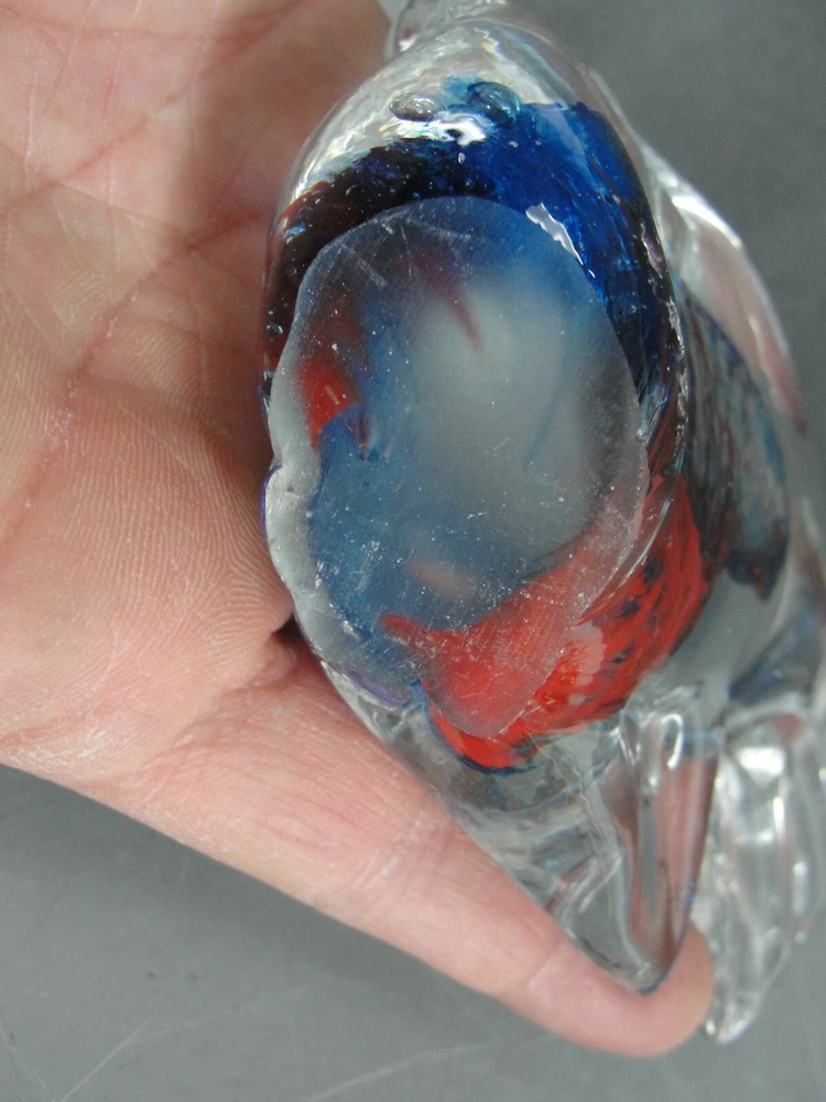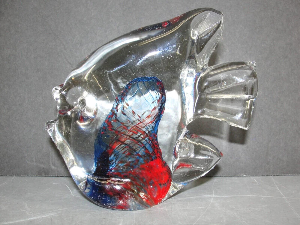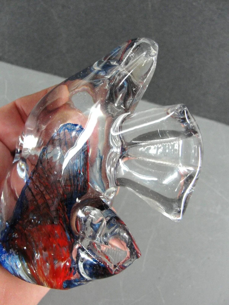 ART GLASS FISH SCULPTURE FIGURINE 🐠 HAND BLOWN BLUE RED SWIRL BEACH DECOR4" VTG Up for your consideration is this Really Nice Hand Blown Art Glass Fish Figurine that would be a gorgeous addition to your beach themed decor or art glass collection. This 4" tall figurine features a brilliant red and blue swirled design in the center of the body that emerges from the base with tiny yellow accent spots throughout. This would be a great addition to your art glass or fish collection. Perfect for your beach themed home decor as well! Please be sure to see all the other items we have listed. FEATURES: Hand Blown Art Glass Fish Figurine - Beautiful Blue and Red Swirled Pattern inside that emerges up from the base - Detailed Fins, mouth, and pressed in eyes - Ground Smooth Base - Stands 4" tall - Add to your art glass collection or beach themed decor ADD. INFO: N/A INCLUDED: The actual Hand Blown Art Glass Fish Figurine pictured. NOT-INCLUDED: No original box, packaging, or paperwork. No props used for size reference. BRAND: Unbranded Unknown LABEL: N/A DIMENSIONS: It measures 4-1/4" wide from tip of fin to tip of mouth x 4" tall x 1-1/4" thick. COLOR: Clear Glass with red, blue, and yellow swirled design inside TYPE: Collectibles, Art Glass, Fish Figurine, 4" tall MODEL #: N/A COPYRIGHT DATE: Unknown CIRCA: Likely around the 1990's give or take 10 years. COUNTRY: Unknown MATERIAL: Art Glass CONDITION: This comes to you in overall excellent condition. There are no cracks, chips, or impacts to the glass. AUTHENTICITY and your SATISFACTION are UNCONDITIONALLY 100% GUARANTEED!!! Once you get it - if you are not thrilled just let me know - I gladly accept returns. Check my feedback and buy with complete confidence I have been selling on eBay everyday since 2001. SHIPPING DETAILS: The buyer pays for securely packed EXPEDITED shipping. It will include tracking and insurance. For premium services delivery to your address will usually take between 3 to 5 days. I will always combine shipping to save you money whenever possible, just email us to let us know. Please be sure to click on the shipping tab to compare rates and see all of the options available for shipping, some options cost less than others. SHIPPING CONDITIONS: *** Please Take Note!!! When paying we can ONLY ship to the address that is included with your payment . If you need it sent to a different address please change that PRIOR to making payment. We can no longer change the ship to address. LOC: F 31 B You really like the thing, but not so much the price... I find cool stuff, do some research and list it for what I think it's worth. Sounds pretty simple but sometimes not. So if this is something you really like but its a bit more than you had hoped to pay, then be sure to watch this because I can't send it to the bank, and if it ends without a buyer chances are good that I will drop the price and re-list it until it does sell! Two things for sure - it will get sold sooner rather than later, and that's better for both of us. International Buyers We will ship to most, but not all locations around the world. We use Priority Mail, and it will include full insurance and delivery confirmation. Unfortunately we do not ship using first class international mail because there is no insurance available. "Import Duties", "Tariffs" and "Taxes" are NOT included in the item price or shipping charges. These charges are imposed and collected by your country and are your responsibility. Please check with your country's customs office to determine what these additional costs (if any) will be prior to bidding/buying. These charges are normally collected by your customs office when you pick the item up or upon delivery ? please do not confuse them with shipping charges, they are not. Buyers using the Ebay Global Shipping Program will be shown these cost prior to purchase. We can NOT reduce the value on the "Customs Forms". The sales prices is automatically entered and also sets the maximum amount that the item can be insured for. We can not mark items purchased by you as "gifts". Some countries restrict or prohibit the import of certain items such as currency - jewelry or animal parts such as teeth, claws, horns or shells from many creature on the endangered specie list. The lists varies widely and changes often. It is your responsibility to check and make sure your country allows this specific item to be imported by you. We take a great deal of pride in our feedback rating and never want you surprised by anything you get from us. PLEASE If there is ever an issue, all we ask is that you give us an opportunity to address it BEFORE leaving feedback. Overall General Condition New Excellent Very Good Good Fair Poor Appearance Brand new and never used. No visible flaws in appearance. First quality, suitable for a gift. Like new condition. Upon close inspection some very minor signs of use or wear, but no serious flaws. Obviously used but kept in great conditional and well cared for. Expected normal signs of wear but no abuse. Clearly used allot, enough to cause significant signs of wear. See item description for more details on further future use. Used extensively, many cosmetic flaws and signs of wear. Questionable functionality Sold "AS IS" Used extensively with abundant and major cosmetic flaws. Likely non- functional. Sold "AS IS" for decorative use only. HUGE eBay STORE; If you liked this item, then you should take a look at some of the other items I have listed, some listings are "Buy-It-Now" and may even have a "best offer" and occasionally go on sale. It's a "virtual treasure trove" crammed full of 100's & 100's of old, new, odd & unusual items!! New items are added weekly. So take a minute and visit our store to see thumbnail pictures of all our items. Just click on this VISIT MY STORE link. You can also quickly search by "word" or just browse by category. If you enjoyed looking at our item please do add us to your favorite seller's list. Just click the fo