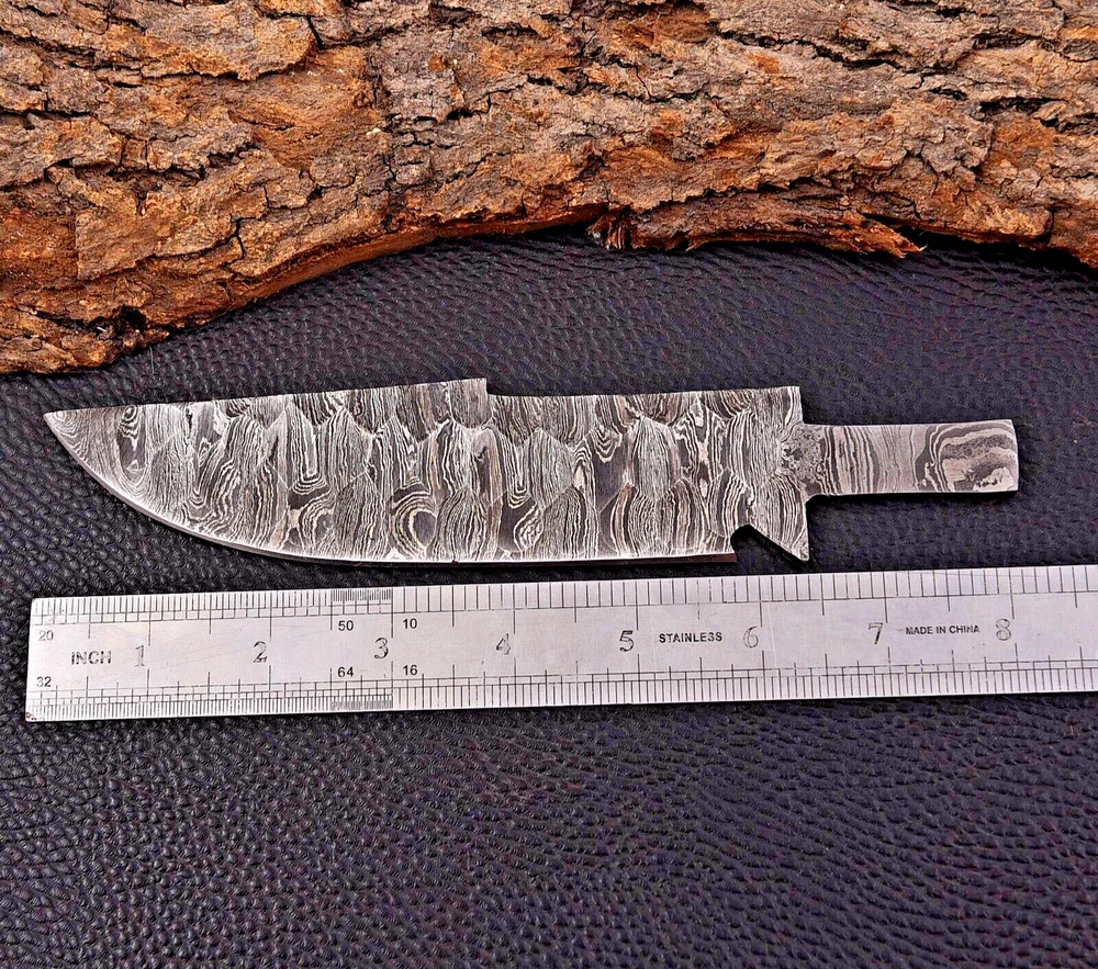 HAND FORGED DAMASCUS STEEL BLANK BLADE FOR SKINNING HUNTING KNIFE This superb design Blank Blade is hand forged. Blade of this knife has a nice file work and is made of 512 layers of 4340 stainless steel and 1075 high carbon steel and hardness 55-58 HRC . This robust Blank Blade is lab tested under intense conditions, the balance and shape of this Blank Blade ensures perfect grip. Overall Length: 8" Inches Damascus Design: Twist Pattern Layers: 512 Hardness: 55-58 HRC Warning: Keep fingers clear of blades Store away from children.