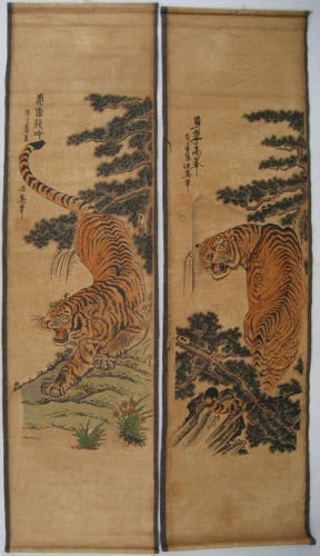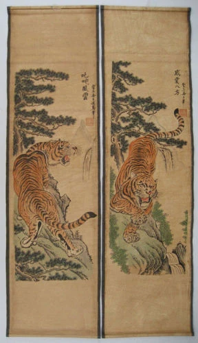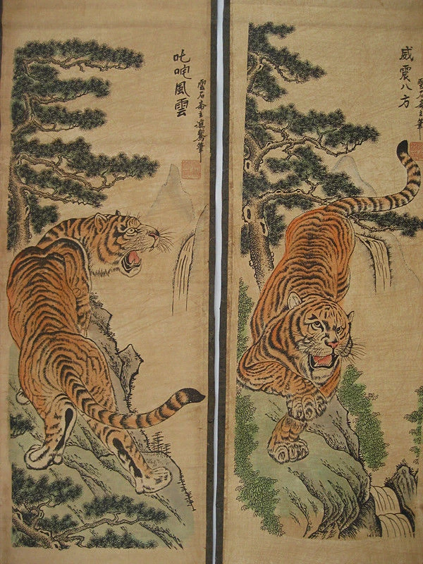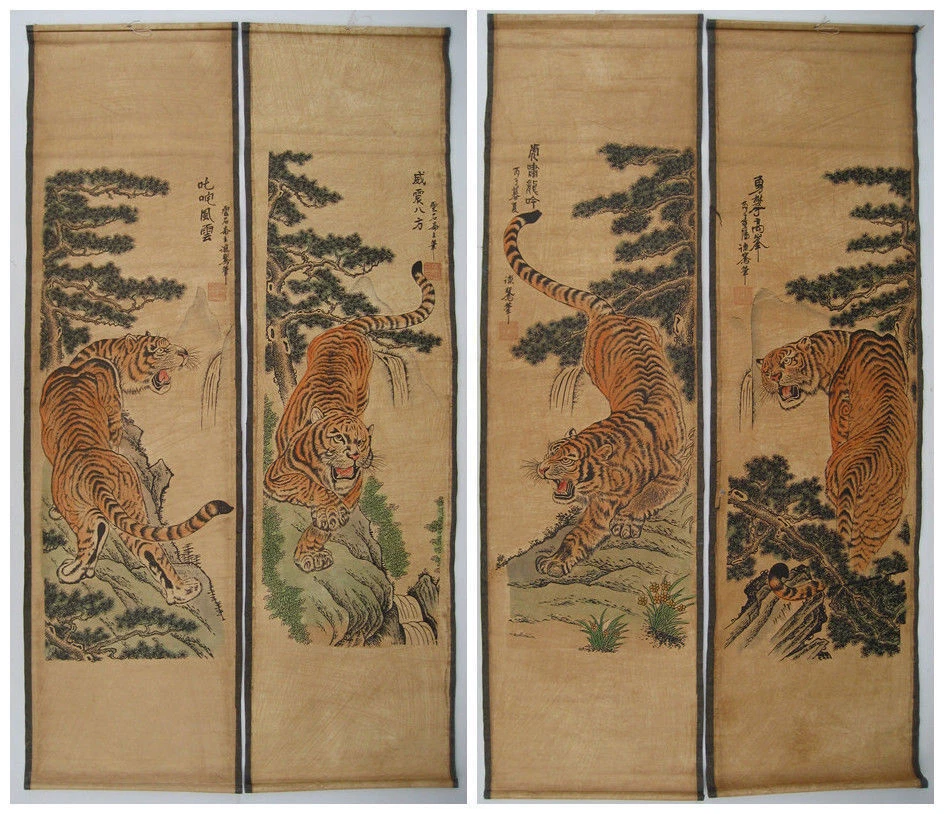 HANGING PAINTING SCROLL" Tiger " NICE SCREEN OF 4PCS Paintings Scrolls