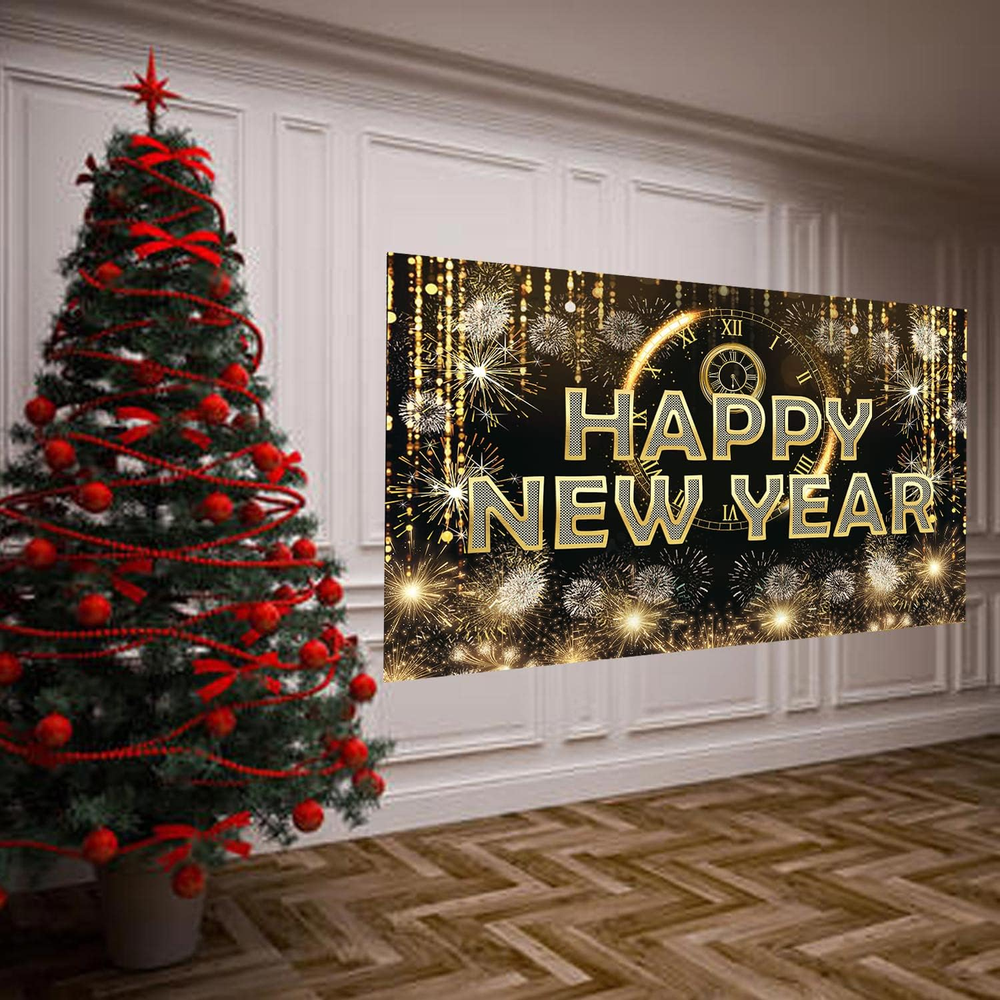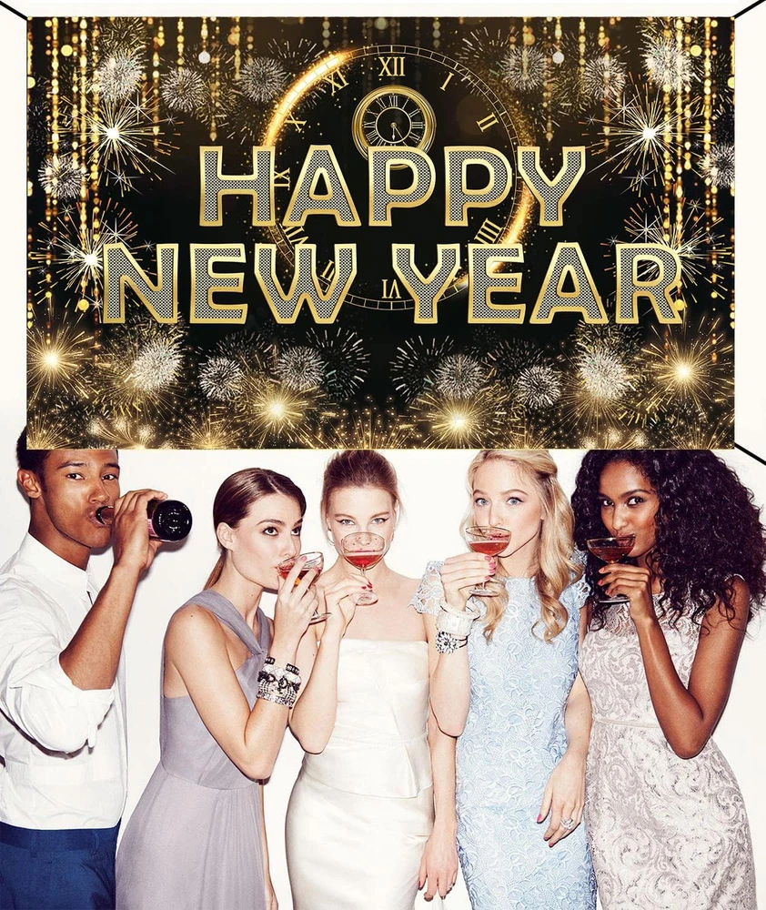 Material:The Gold Happy NEW YEAR Banner is High quality ECO-Friendly Fabric Sign Poster Backdrop Banner.It is soft smooth material,Durable and Washbale,it also can be reused! Design Elements: Black background with Gold Alphabet Happy NEW YEAR banner firework,star pattern are printed on the banner; this design perfect for your new year theme party photo booth decoration. Size: 43.3"x70.8" inches, hanging rope is 157.4"; Enough big backdrop banner perfect for your new year party decorations. Applications:There is enough length rope to hang in outdoor and indoor,bedroom and in the yard,anywhere of you want. Increase the new year party atmosphere. Easy to hang:Come with 4 holes at the corner with a long rope use 157.4"/ 4 meters sturdy hemp rope,it can easy to pass through the copper buckle and hang it up.it is very cute and beautiful! Material:The Gold Happy NEW YEAR Banner is High quality ECO-Friendly Fabric Sign Poster Backdrop Banner.It is soft smooth material,Durable and Washbale,it also can be reused! Design Elements: Black background with Gold Alphabet Happy NEW YEAR banner firework,star pattern are printed on the banner; this design perfect for your new year theme party photo booth decoration. Size: 43.3"x70.8" inches, hanging rope is 157.4"; Enough big backdrop banner perfect for your new year party decorations. Applications:There is enough length rope to hang in outdoor and indoor,bedroom and in the yard,anywhere of you want. Increase the new year party atmosphere. Easy to hang:Come with 4 holes at the corner with a long rope use 157.4"/ 4 meters sturdy hemp rope,it can easy to pass through the copper buckle and hang it up.it is very cute and beautiful!