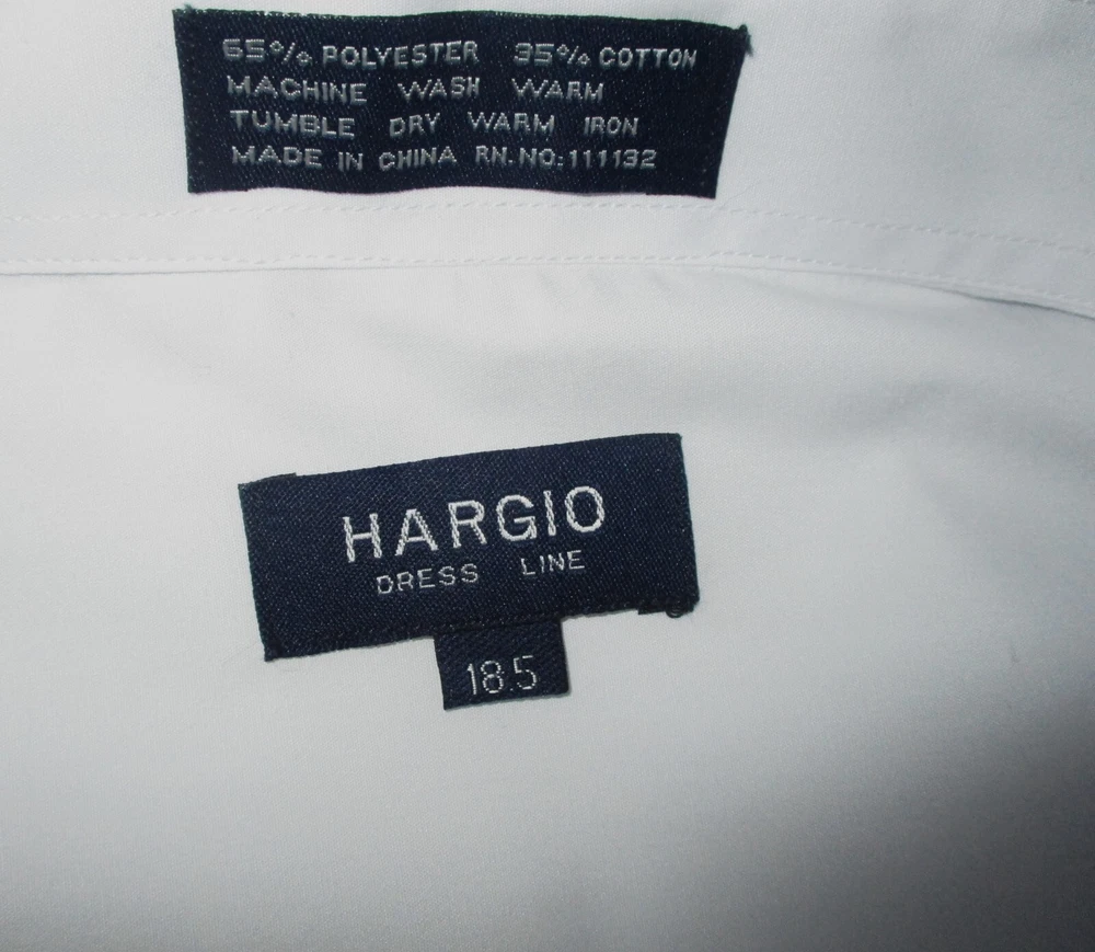 See my EBAY STORE at “SAMTPC53” to view 100’s more of my Men's Shirts!!! Combine Shipping: (on multiple items you pay full price on heaviest item first and then HALF PRICE shipping on ALL other clothes items. Men's Short Sleeve Dress Shirt. Brand: HARGIO. Description: men's cotton HARGIO short sleeve dress shirt, buttons on front, one pocket, see pics Color: White. Size: 18.5 (please see measurements). Measurements: 28" armpit to armpit, 35" shoulder to hem. Material: 35% Cotton, 65% Polyester. Condition: Excellent condition, NWT.