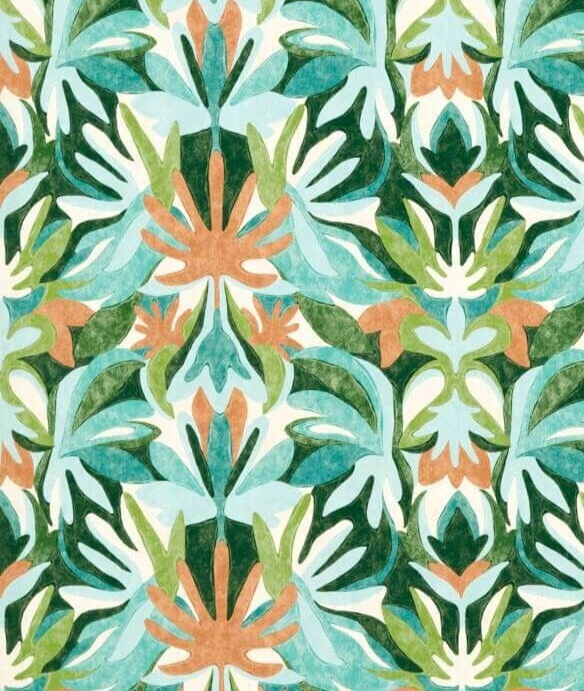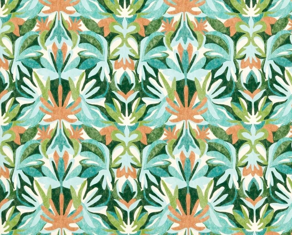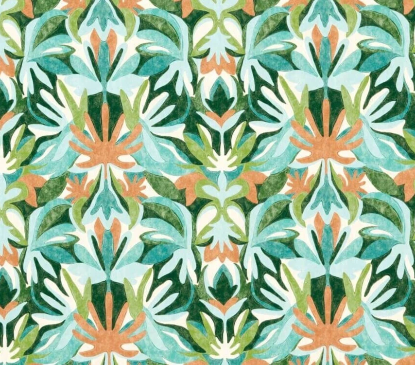 HARLEQUIN FABRIC FROM THE OUTDOOR FABRIC COLLECTION DESIGN IS CALLED MELORA FIG LEAF/PAPRIKA/AZUL COLOURWAY PATTERN REPEAT 38.6 cm YOU ARE BUYING A PIECE OF FABRIC APPROXIMATELY 2.3 METRES IN LENGTH 1.38.2 METRES WIDE. 100% POLYESTER SUITABLE FOR CURTAINS,BLINDS OR CUSHION COVERS PLEASE NOTE THAT THE MAJORITY OF MY FABRICS WILL COME FOLDED