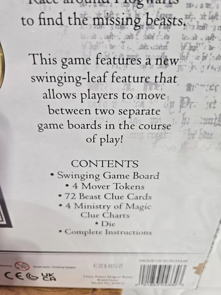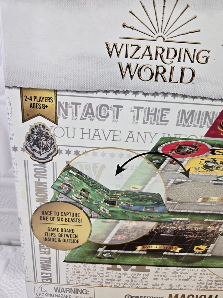 New/ Sealed Harry Potter Series Magical Beasts Board Game by Pressman. Wizarding World Designed for 2 to 4 Players Recommended for Ages 8+ Model# 4330 G Board game flips between inside and outside Race to capture one of six Beasts! Fun Family Night Please see all of the pictures Thank you!