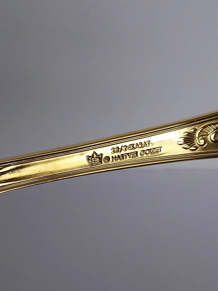 HARTVER GOLDET 23/24 K Gold Plated Flatware Pie Cake Server Solingen Germany. Nice gold plated pie server. Some lite wear from age and use, overall nice. No original packaging included. Smoke free home.
