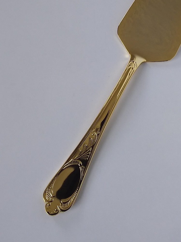 Finish: Glossy Country/Region of Manufacture: Germany Set Includes: Pie Server Brand: Solingen Material: Gold Plated Color: Gold Handle Material: Stainless Steel Department: Adults gtin13: does not apply Occasion: All UPC: does not apply Type: Pie Server