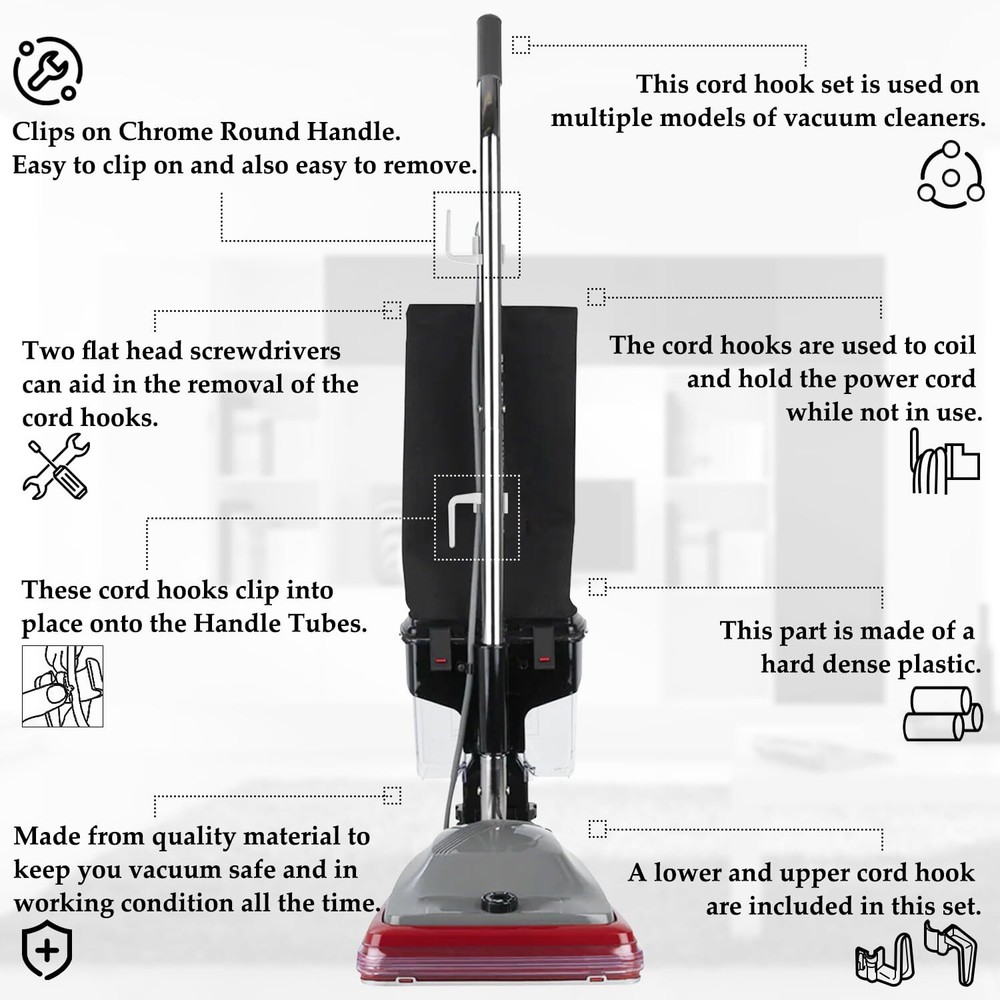 These hooks are a game-changer for keeping vacuum cords tidy! They snap on easily, hold the cord securely without slipping, and prevent annoying tangles. Perfect fit for my Sanitaire vacuum—no more wrestling with the cord mid-clean. The plastic feels durable, and the beige color blends well. Love that HASMX backs them with a solid warranty. Highly recommend if your model is compatible!