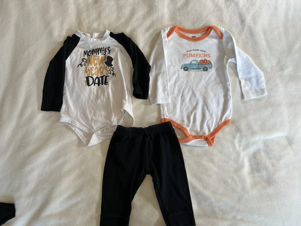 This Unique Baby 3 Piece Clothing Set is perfect for your little boy's Thanksgiving and New Year celebrations! The set includes a long sleeve shirt, a casual shirt, and pull-up pants. The red cotton fabric is embellished with vinyl sayings and accents such as buttons and body shirts. The outfit is easy to care for and wrinkle resistant. It is ideal for activewear, parties, or casual occasions during the winter season. The set is machine washable and made of 100% organic cotton. It is available in size 18 months and is perfect for your little boy's holiday and Thanksgiving events! I strive for 5 star ratings. Your item will be shipped in a box with bubble wrap. Shipping is the same day, or the next day depending on the time of purchase. Smoke and pet free home, and all items are clean! Check out my other listings, as I offer combined shipping. Some delicate items may need to be shipped separately. Please, make sure your correct and current address is on file with eBay, as we can only ship to the address on file. Thank you! Lot number B62