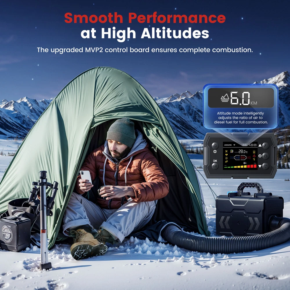 Similar Items Description Features: 1. Enhanced heating efficiency system: Experience enhanced heating efficiency with our advanced aluminum diesel air heater. The improved aluminum body is wider and longer, allowing for rapid warmth as it raises air temperature by 18-36°F. This innovative design reduces exhaust gas temperature by 90 -180°F, ensuring a comfortable environment even in the coldest conditions. Enlarged smoke vents facilitate better combustion, minimizing smoke and carbon buildup. With automatic temperature control adjustment, this system effectively addresses overheating issues, while its fuel consumption rate of just 0.036-0.1 gallons per hour promotes significant fuel savings. 2. Compact Toolbox Design: This portable diesel heater comes in a compact, toolbox-style design with a built-in 6L fuel tank and handle, making it easy to transport, install, and maintain. Ideal for RVs, trucks, and outdoor adventures, its space-saving design ensures hassle-free operation wherever you go. 3. Dual Power Options: This versatile diesel air heater supports both 12V/24V DC and 110V AC power sources, making it suitable for a wide range of vehicles and locations, whether on the road or at home. 4. Smart App Control: Take full control of your heating experience with our Bluetooth app, allowing you to adjust temperatures, set timers, and activate altitude mode for optimal performance at high elevations. Enjoy the convenience of managing your heater directly from your smartphone. 5. bluetooth app remote switch , Smarter - Download the "Hcalory" App( From the instruction manual ), available for iOS and Android devices, which enables user to remotely control the heater via Bluetooth 6.Comprehensive Safety Features: Engineered with multiple safety protections, including over-heating, short-circuit, reverse connection, and over-voltage safeguards, this portable diesel heater ensures safe and reliable operation in any environment. 7. Certified & Safe:Complies with all local, state, and federal safety regulations. Equipped with safeguard safety functions such as automatic shutdown and overload protection for a worry-free experience. Warning: This heater must be exhausted to the outdoors to prevent CO poisoning. Rest easy knowing your heater is designed with your safety in mind, allowing you to focus on your adventures. TB2: Specifications: Brand HCALORY Type All in one Diesel Heater Model TB2-2024 Upgraded Color Black Configuration fuel tank 6L Rated power 5KW-8KW Rated voltage 12V/24V & 110V Fuel consumption 0.14 liters - 0.41 liters/hour Remote control effective distance 50-100 meters Radiator working temperature -40~+50°C Operating temperature of oil pump -40~+40°C Packaged included: 1 x Air Heater Host 1 x LCD Display switch 1x Remote control 1 x Intake pipe 1 x Air Outlet pipe 1 x Exhaust pipe 1x Vent 1 x Air Filter 1x Silencer 1 set Accessories set 1 x AC power adapter(US Plug) 1 x DC battery power cable 1 x User manual Note: 1. Please allow 0.5-1cm differences due to manual measurement. 2. Due to the light and screen difference, the item's color may be slightly different from the pictures. TB1 SE: Specifications: Brand HCALORY Type All in one Diesel Heater Model TB1 SE-2024 Upgraded Color Black Configuration fuel tank 5L Rated power 8KW Rated voltage 12V/24V & 110V Fuel consumption 0.14 liters - 0.41 liters/hour Remote control effective distance 50-100 meters Radiator working temperature -40~+50°C Operating temperature of oil pump -40~+40°C Packaged included: 1 x Air Heater Host 1 x LCD Display switch 1x Remote control 1 x Intake pipe 1 x Air Outlet pipe 1 x Exhaust pipe 1x Vent 1 x Air Filter 1x Silencer 1 set Accessories set 1 x AC power adapter(US Plug) 1 x DC battery power cable 1 x User manual Note: 1. Please allow 0.5-1cm differences due to manual measurement. 2. Due to the light and screen difference, the item's color may be slightly different from the pictures. #divSKUDetail2 Detail Image Payment 1.We accept Payoneer、PayPal、Mastercard、VISA、Google Pay 、American Express etc. 2.All major credit cards are accepted through secure payment processor. 3.Payment must be received within 7 business days of auction closing. 4.We ship to your eBay or payment address. Please make sure your eBay and payment address is correct before you pay. Shipping 1.We ship to your eBay or Paypal address. Please make sure your eBay and Paypal address is correct before you pay. 2.Items will be shipped within 1-3 business day when we received payment. 3.Delivery time depends on destination and other factors;