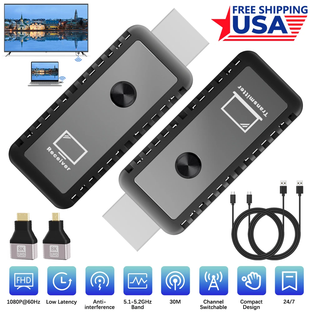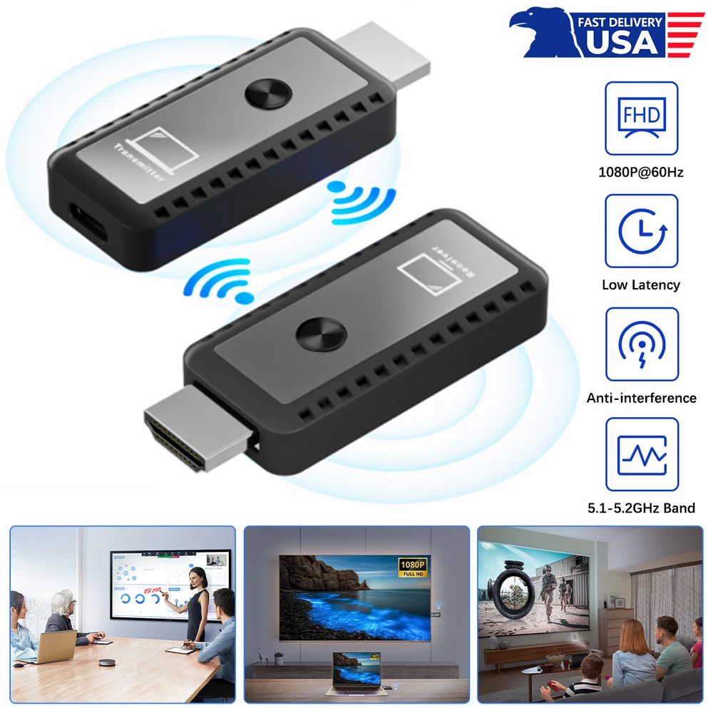 HD Portable Wireless HDMI Transmitter Receiver Video Audio Extender For PC TV.US