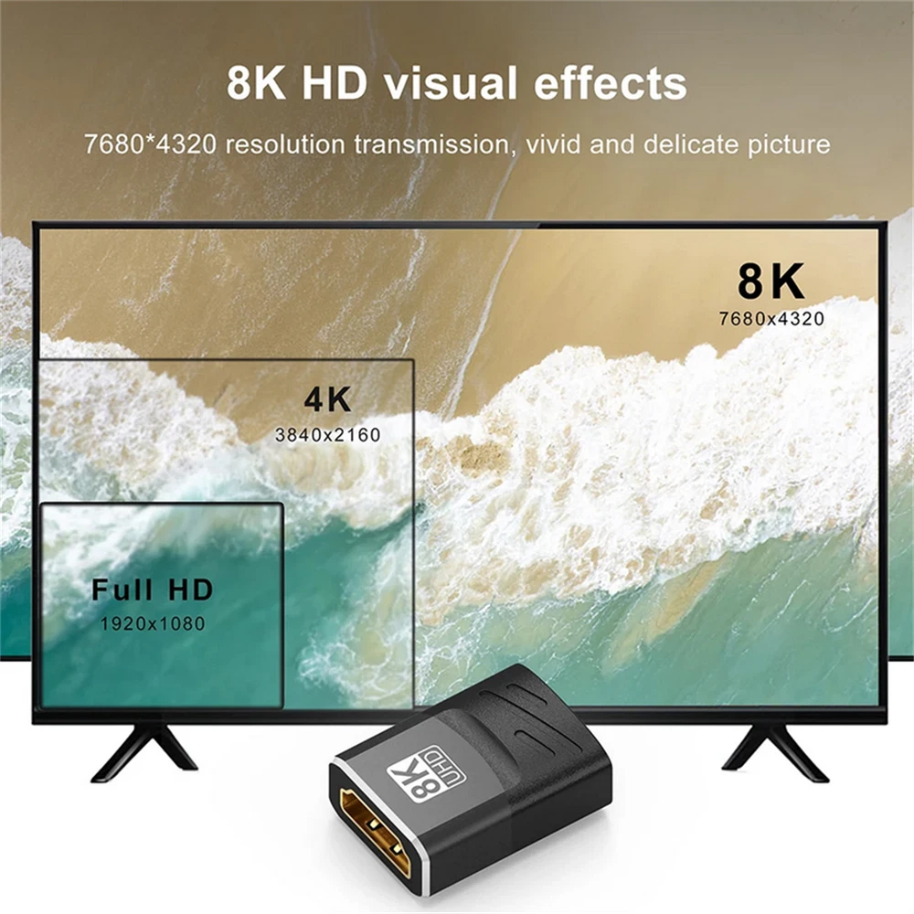 You may also like Durable Kalimba Tuning Hammer Stainless Steel Finger Thumb Piano Instrument Tool 1.99 USD 4.99 USD 2* Gold Metal Humbucker Pickup Mounting Ring Frame Bridge Neck Flat 10.89 USD 5pcs Piston Ring Kit For Honda GX160 GX200 5.5HP 6.5HP Brushcutter Lawn Mower N 2.99 USD 4.99 USD 433MHZ WIRELESS DOOR WINDOW GAP MAGNETIC CONTACT SENSOR FOR ALARM SYSTEM c 3.99 USD 4.99 USD 6V-12V 320A High Voltage ESC Brushed Speed Controller for RC Car Truck Boat a 17.89 USD 100PCS stem extenders/extensions for repairing Extending watch crown stems 12.78 USD Product Description HDMI-Compatible Adapter 8K 60Hz 4K 120Hz Female To Female Connector HDMI-Compatible 2.1 Cable Extension Converter HDMI-Compatible Adapter Coupler Specification: Material: Aluminum alloy/PVC Interface process: Gold plating Resolution: 7680x4320P Bandwidth: 48Gbps Refresh rate: 8K@60Hz /4K120Hz Version: 2.1 (Backward compatibility 2.0) Feature: 1. UHD 2.1 8K Resolution: Supports 7680x4320, 8K/60Hz and compatible with 4K@120Hz, 48Gbps. Offers more dynamic range and image detail, providing a deeper and more realistic viewing experience. Note: The host and display devices must also be version 2.1 to meet requirements. 2. Stunning 3D Visual Effects: Create a high-definition home theater with 3D imaging technology. Smooth and natural color transitions provide vivid and lifelike images that transport you into the scene. 3. Compatibility with Various Devices: Suitable for monitors/ TVs/ projectors/ desktop computers/ laptops/ game consoles, etc. Please check the interface type before purchasing and HDMI-compatible cables are required for use. Product List: 1x HDMI-Compatible Adapter About Us Payment Shipping Returns Contact Us Welcome to our store! Our aim is to offer our clients items with high quality and fast delivery, also our price will be reasonable. We supply many products including video game, health & beauty, phone accessories, computers accessories, camera & camcorder,car accessories, games, toys & hobbies, jewelry, antique & craftwork. Excellent customer service and a reliable credit standing is our tenet. We accept all verified payments from ebay. Orders will be shipped after receiving cleared payment. We ship most of our orders within 24 hours, and may up to 48 hours. If you want faster shipping way. Please contact us before making payment. Sometimes due to problems with our transportation company system, your shipping information may be delayed to update. We recommend that you try again after 3-4 days. If you still haven't checked the shipping information, you can contact us by ebay message. Always believe we can figure things out with communication, if it comes to return, the pacakge must be intact and the same as you receive. If you have any questions, please feel free to email our service specialists 24 Hours a Day, 7 Days a Week. We will reply you ASAP. Return/refund is accepted within 30 days after the buyer receives the item. NO exchange will be accepted after 30 days from the date when the item is received. Please contact us first before returning your product!!! If you have any questions, our Customer Service staffs welcome you to email us. We strive to answer all questions and resolve any problems as quickly as possible. We care about our valued customers, and will always try to help you. So if you have any problems, You can contact us 7*24, we will reply at the first time. About Us Welcome to our store! Our aim is to offer our clients items with high quality and fast delivery, also our price will be reasonable. We supply many products including video game, health & beauty, phone accessories, computers accessories, camera & camcorder,car accessories, games, toys & hobbies, jewelry, antique & craftwork. Excellent customer service and a reliable credit standing is our tenet. Payment We accept all verified payments from ebay. Orders will be shipped after receiving cleared payment. Shipping We ship most of our orders within 24 hours, and may up to 48 hours. If you want faster shipping way. Please contact us before making payment. Sometimes due to problems with our transportation company system, your shipping information may be delayed to update. We recommend that you try again after 3-4 days. If you still haven't checked the shipping information, you can contact us by ebay message. Returns Always believe we can figure things out with communication, if it comes to return, the pacakge must be intact and the same as you receive. If you have any questions, please feel free to email our service specialists 24 Hours a Day, 7 Days a Week. We will reply you ASAP. Return/refund is accepted within 30 days after the buyer receives the item. NO exchange will be accepted after 30 days from the date when the item is received. Please contact us first before returning your product!!! Contact Us If you have any questions, our Customer Service staffs welcome you to email us. We strive to answer all questions and resolve any problems as quickly as possible. We care about our valued customers, and will always try to help you. So if you have any problems, You can contact us 7*24, we will reply at the first time. Replacement Ear Pads Cushions for Plantronics BackBeat FIT 505 500 Headphones 12.89 USD 8 in 1 Ring Holder Silicone Mold DIY Resin Craft Mould Casting Epoxy Ornament 4.99 USD 4.99 USD Replacement Quartz Movement 2 Hands Watch Movement Repair Parts for Ronda 751 E 16.29 USD 1/100 Scale J-10 Diecast Aircraft Airplane Model Military Combat Fighter W/Base 15.49 USD 4.99 USD 1:64 1997 Pierce Quantum Pumper Fire Truck Alloy Model Collection With Base 16.99 USD 4.99 USD Lightweight Wooden Ring Box Display Jewelry Earring Gift Holder With Led Light 7.99 USD 4.99 USD High Quality Ebony Gold Plated Classical Guitar Chords Tuners 3R 3L Machine Head 23.89 USD Plastic Model Trees Train Railroad Wargame Park Scenery HO Scale Scene Layout 14.59 USD 1/400 Aircraft Asia Cathay Pacific A350 Alloy Diecast Plane Model Gifts Static e 15.89 USD