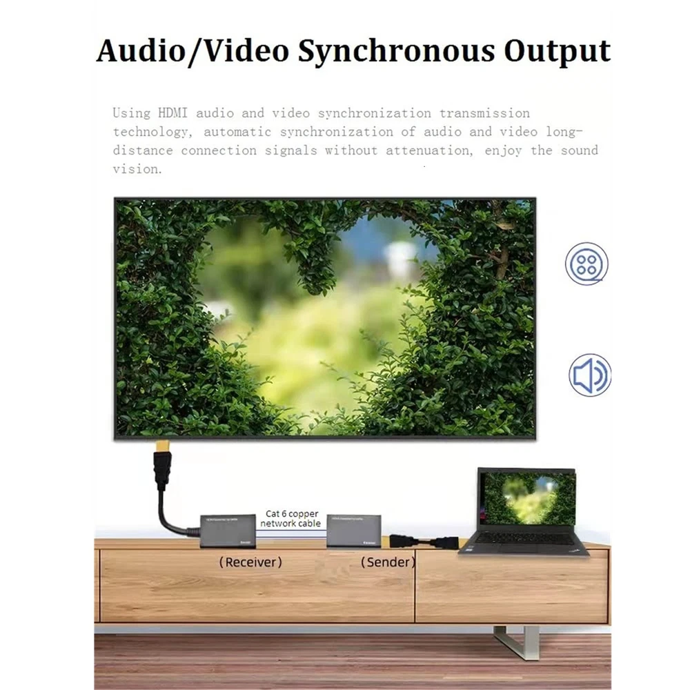 This HDMI extender is a game-changer! It delivers crystal-clear 1080p video and high-quality audio over Cat5e/6 cables up to 30 meters without any lag or signal loss. Super easy to set up—just plug and play. Works flawlessly with my home theater setup, supporting all major audio formats. Compact design saves space compared to bulky alternatives. Perfect for extending HDMI signals across rooms without compromising quality. Highly recommend for anyone needing a reliable, long-distance HDMI solution!