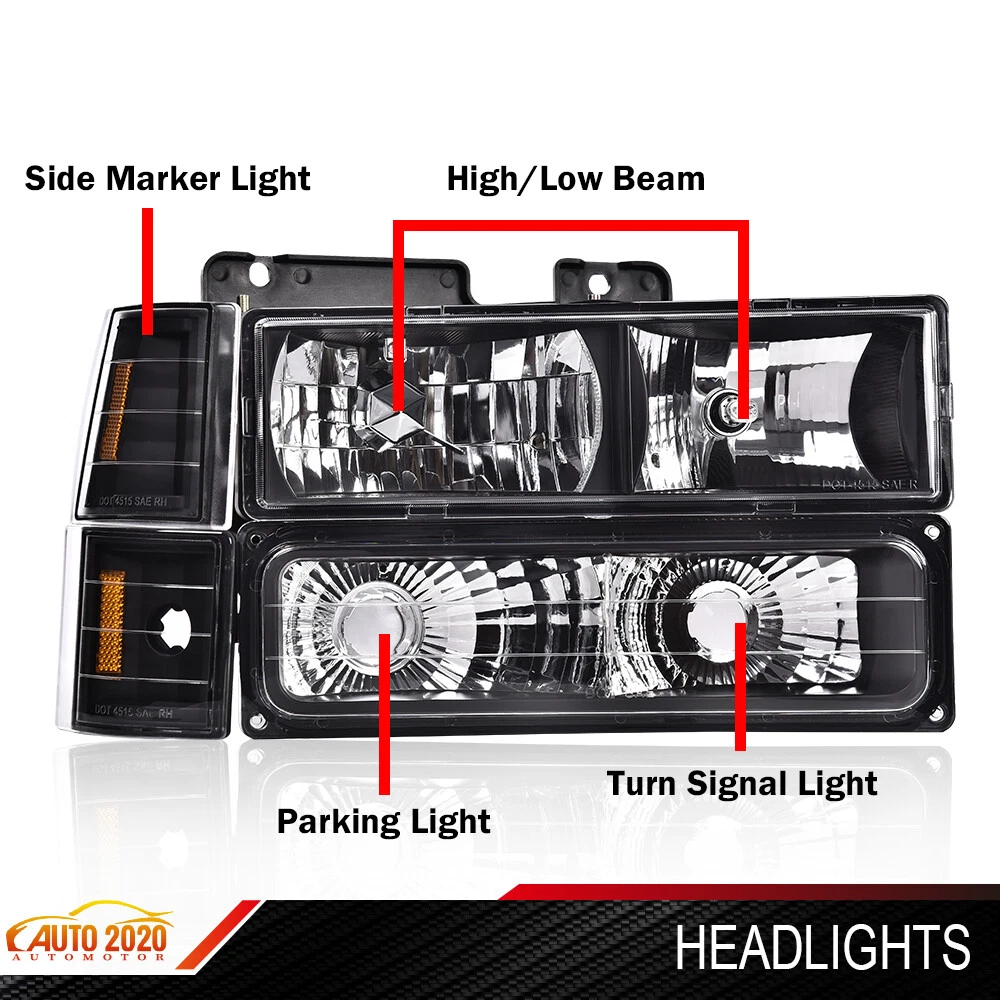 AUTOMOTO PRODUCT FIT FOR 94-00 GMC C10 C/K SUBURBAN HEADLIGHT BUMPER LAMP CORNER PAIR Product Introduction Title: Headlights Application : For 94-99 GMC C1500 K1500 Yukon For 94-99 GMC C1500 C2500 K1500 K2500 Suburban For 94-00 GMC C2500 C3500 K2500 K3500 Only Fits Models with Composite Headlights Description: · 100% Brand New · Perfect replacement or upgrade for factory headlights · Comes with a complete set of headlights (driver and passenger side) · Designed for safe and enjoyable driving. With this easy headlight upgrade,you can drive more safer and see more clearer in darkness, bad weather and low-visibility areas. · Installation instruction is NOT Included.Professional Installation is highly recommended. · Requires no modification or drilling Package Includes: 1 x Pair of Headlights (Left + Right) 1 x Pair of Bumper Lights (Left + Right) 1 x Pair of Running Lights (Left + Right) 1 x Pair of Reflectors (Left + Right) Note: All of the items in our shop will come to you with the tracking number. Visit shop home WELCOME to our ebay shop CONTACT US We Open 7 Days A Week ABOUT US ABOUT US: Welcome to GPLUS's eBay Store. We specialize in aftermarket automotive car parts and is the #1 industry distributor for affordable and quality products. Welcome to GPLUS's eBay Store. We specialize in aftermarket automotive car parts and is the #1 industry distributor for affordable and quality products. Welcome to GPLUS's eBay Store. We specialize in aftermarket automotive car parts and is the #1 industry distributor for affordable and quality products. SHIPPING Shipping Information All items will ship within 24 hours (Monday - Friday). Payment cleared/received on Friday will be shipped on the next business days (Monday or Tuesday). We are not responsible for carrier transit time. This information is provided by the carrier and excludes weekends and holidays. Note that transit times may vary, particularly during peak periods or in climate weather conditions, and that delivery times frames will need to be extended for any processing time frames in excess of 1-2 business days. excess of 1-2 business days. International Shipping: International buyers are responsible for possible customs fees, brokerage fees or duty fees. We would appreciate for understanding of tracking number would not be updated in between the city of departing in the U.S. and the city of destination. ATTENTION Cargo transportation Double check shipping address. We are not responsible for incorrect or undeliverable addresses. Please use Shipping & Payments tab on top of page for shipping details for your location. Transaction will be held until a full shipping amount received. Shipping address Some of the packages cannot be delivered to a PO Box. Customer is responsible to ensure PO Box address given is deliverable by the shipping company. Package will be held until a valid physical address is provided. Customer assumes shipping charges incurred in shipping to undeliverable address. Customs duties International buyers are responsible for all customs duties, taxes, and other applicable fees incurred by the country's customs/border regulations. Please contact customs for more information. We are not responsible for any changes to address after item has been shipped. RETURN please notify us within 30 days after you've received your purchased item. Return Policy: Buyers pay for return shipping fee. Items to be returned must be in resalable condition.14 Days money back, please notify us within 14 days after you've received your purchased item. If your order has been received and it is not what you ordered, or if your item has a manufacturer defect, please contact us within 14 days from delivery date. And you must contact us to request an Return Merchandise Authorization Number (RMA). No return package will be accepted without a valid RMA number. All products are covered by our warranty against defects. EMAIL click here for questions All return requests must be submitted through your eBay account. Iterms and Condition For emissions related items, please check with your local jurisdiction for emission specific requirements before purchasing. All items do not come with installation instruction unless otherwise specified. If item is questionable, please consult your local professional/mechanic before making purchase.