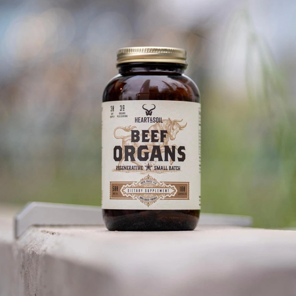 Brand HEART & SOIL Flavor beef Unit Count 180.0 Count Item Form Capsule Age Range (Description) Adult Package Information Bottle Number of Items 1 Servings per Container 60 Dosage Form Capsule Allergen Beef About this item NUTRIENT-RICH: Eating animal foods nose to tail (organs and muscle meat) provides us with ALL of the nutrients we need to thrive in the most bioavailable forms and proper ratios. DOCTOR-DEVELOPED, BACKED BY SCIENCE: Researched and formulated by Paul Saladino MD, bestselling author of “The Carnivore Code,” who recommends consuming organ meats for optimal health on ANY diet. No matter what you are eating, including the unique nutrient-rich profile of organ meats will undoubtedly improve your HEALTH and VITALITY. MADE WITH THE HIGHEST STANDARDS: Sourced from the highest quality REGENERATIVE farms in New Zealand. 100% GRASS FED. 100% GRASS FINISHED. NO fillers, flow agents, or additives. 100% Pesticide free, GMO free, hormone free, and third-party tested for purity. 100% freeze-dried to preserve the biological activities of delicate nutrients, peptides, enzymes, and growth factors. 100% GRASS FED LIVER, HEART & KIDNEY: Provide nutrients and peptides that support optimal brain, heart, liver, and kidney health, as well as histamine metabolism and exercise performance including vitamins A, D, E, K2, B12, CoQ10, riboflavin, folate, biotin, choline, anserine, carnosine, taurine, L-carnitine, DAO (diamine oxidase), LEAP-2 and many others. 100% GRASS FED SPLEEN & PANCREAS: Contain many nutrients that support energy, mitochondrial function, and overall digestive health including heme iron, B12, and selenium, peptides such as splenin, splenopentin, and tuftsin involved in the protective response, and digestive enzymes like lipase, trypsin, and amylase.