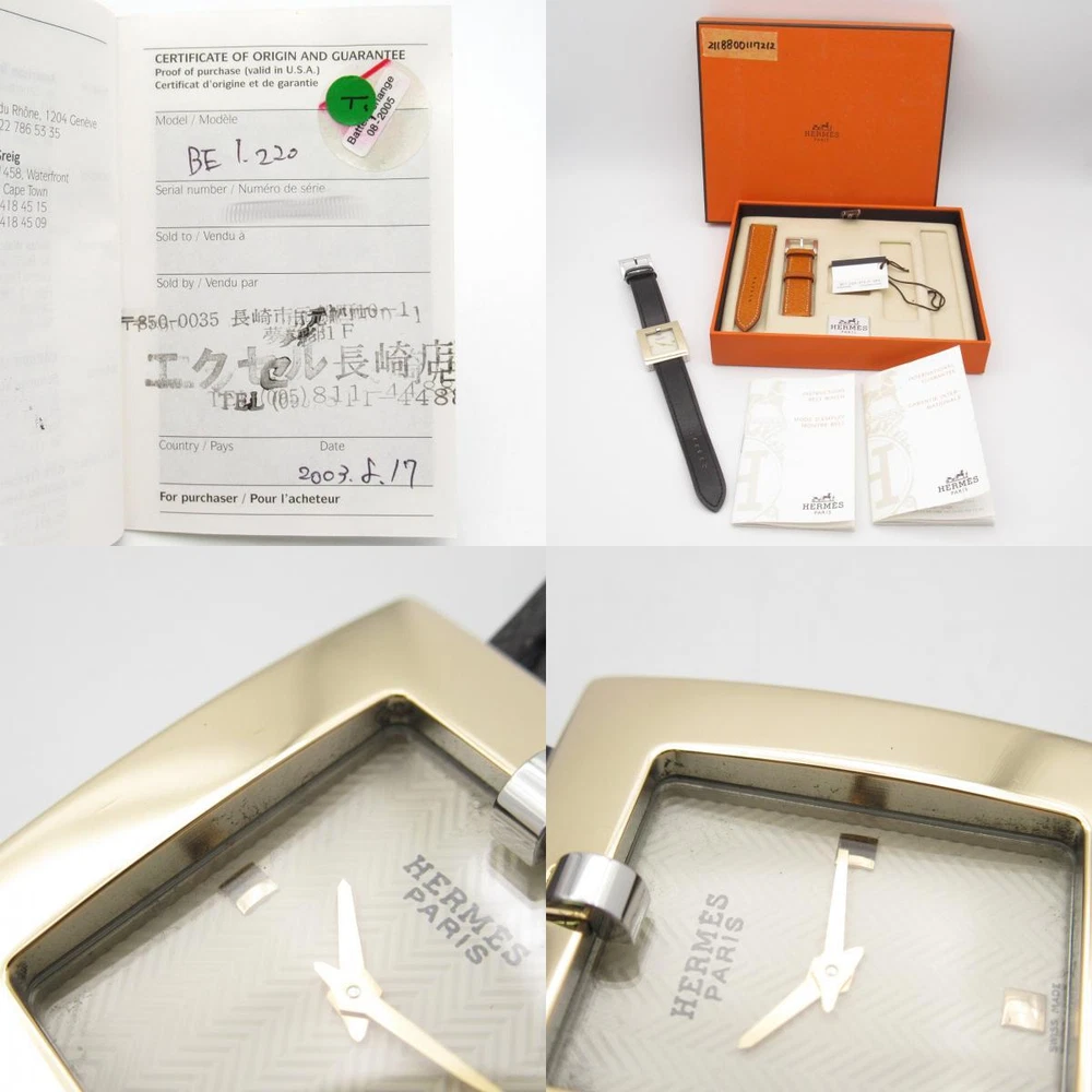 HERMES Belt watch Wrist Watch BE1.220 Quartz Gold Plated SS Used Women Description / Specification Brand Name HERMES Item Name HERMES Belt watch Wrist Watch BE1.220 Quartz Gold Plated SS Used Women Color White‐ish colors Material Gold Plated × Stainless Steel × Leather belt Size Band Width:about 17~16mm Accessories Storage box/Guarantee/ Accessories not stated are not included. (If there is no mention of a box or dust bag, they are not included either.) Type For Ladies Movement Quartz Waterproof Daily life waterproof Case Diameter 26mm x 29.5mm Case diameter(1.0 x 1.2" Case diameter)Without crown Wrist Size(Approx) 〜16cm(-6.3") Remarks In the case of the watches that the material of belt made of Crocodile and Ostrich as restricted by the Washington Convention, we ship only the case of the watch and buckle, buckle tongue by removing the belt.It would be great if you would understand this. Instore Code 2118800117212 Up Date 2024/11/30 Condition Pre-owned used Wrist Watch by HERMES in good condition . Outside Condition There is some usability, scratches, rubbing, and stain. There are some signs of wear. *This product has been polished, but there may be small scratches that cannot be removed. Thank you for your understanding. Remarks It comes with a replacement belt. A battery has been changed on November 2024. There is a stain and scratch on the dial glasses case and belt. Please take a look at the descriptions and the pictures above to check the condition of the item before the purchase. Rank Pristine New, Not used. Excellent Excellent, Allmost as good as new. Very Good A slightly used. Good There are a few scratches, stains and looks a little used. Fair + There are some noticeable scratches and stains. Looks used. Fair There are some noticeable scratches and stains. Looks obviously used. Poor + There are many scratches and stains. Looks very used. Poor Looks very used, but still usable. About Authenticity We have a large selection of luxury brand products We guarantee that all of the items we list and sell are authentic. Feel free to contact us if you have any inquiries or concerns. We are approved seller from Tokyo Metropolitan Police License No : 301061906960(Used Item Seller ) In addition, We also are a member of the Association Against Counterfeit Product Distribution (AACD), and we promise to have no bogus under any circumstances. Please read before order Shipment cannot be marked as a 'gift' or with altered price due to the custom declaration laws. Import duties, taxes, or other additional fees will be charged by your local customs. We are not responsible for any customs and taxes applied to your order. All fees imposed during or after shipping are the responsibilities of the customer (tariffs, taxes, etc.). Please inquire the details of import duties or taxes at the customs office in your country directly before making an order. Payment & Shipping Payment We only accept payments via Managed Payments. Shipping All items will be shipped from Japan. We can only make shipment to the registered address with your ebay account. All orders are processed within 3-5 business days. Orders are not shipped on weekends or holidays. 1.Shipments will be made by DHL. 2.For orders which are not able to be shipped by DHL, they will be shipped by Fedex or UPS. 3.Orders for China will be shipped via EMS of the Japan Post. 4.We currently suspend shipping services to APO/FPO, Brazil, Chile, Indonesia, Mexico, Peru, Philippines, Russian Federation, and Ukraine. Delivery time 1.Delivery usually takes approximately 3-10 business days 2. Shipments might be delayed due to the following reasons: a)Bad weathers b)Public holidays c)Delay at the customs office Returns/Cancellation Policies As we selling our items on other websites and in our retail stores in Japan at the same time, if the item was sold out before your purchase, your order will be cancelled with a full refund Customers are allowed to return the item within 30 days from the delivery or pick up date for a full refund. Items without the security tag are not allowed to be returned. All fees imposed during the return shipping are the responsibilities of the customer Please contact us before starting a return Please provide us the tracking number once return shipment is made. If the mistake caused by human error is occer, please forgive me for cancelling by us. See more Policies & Description