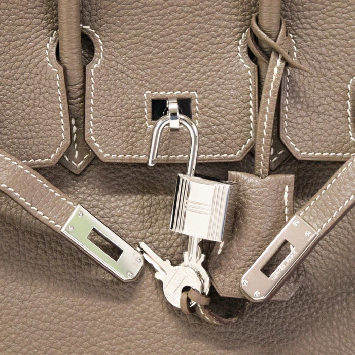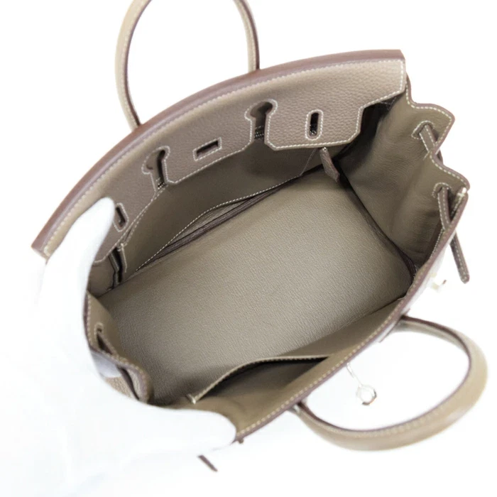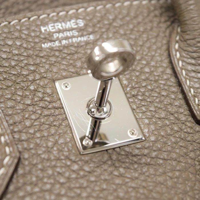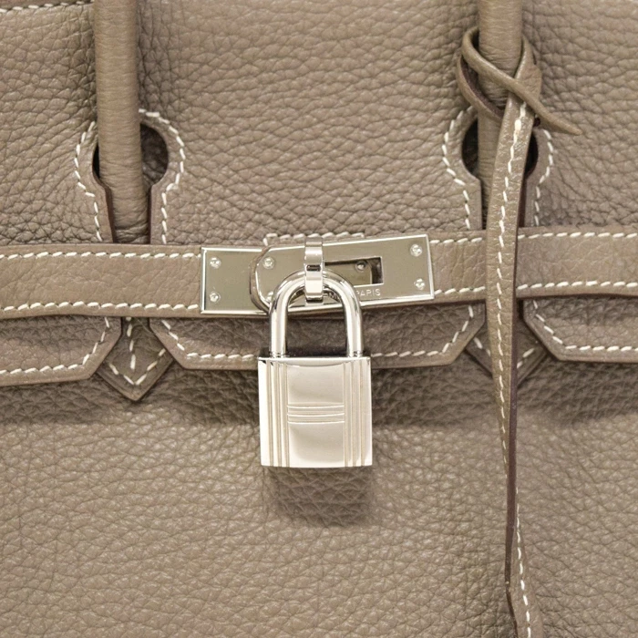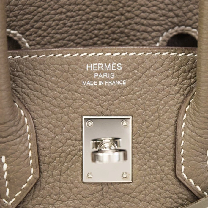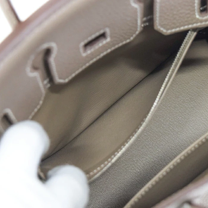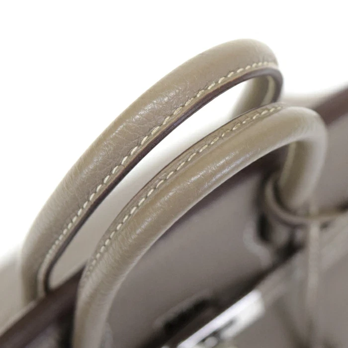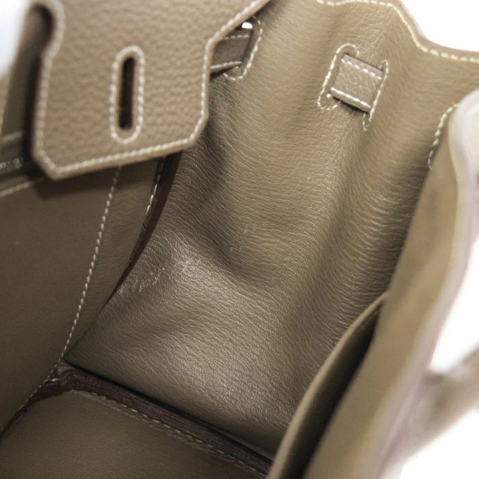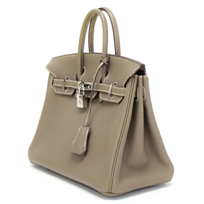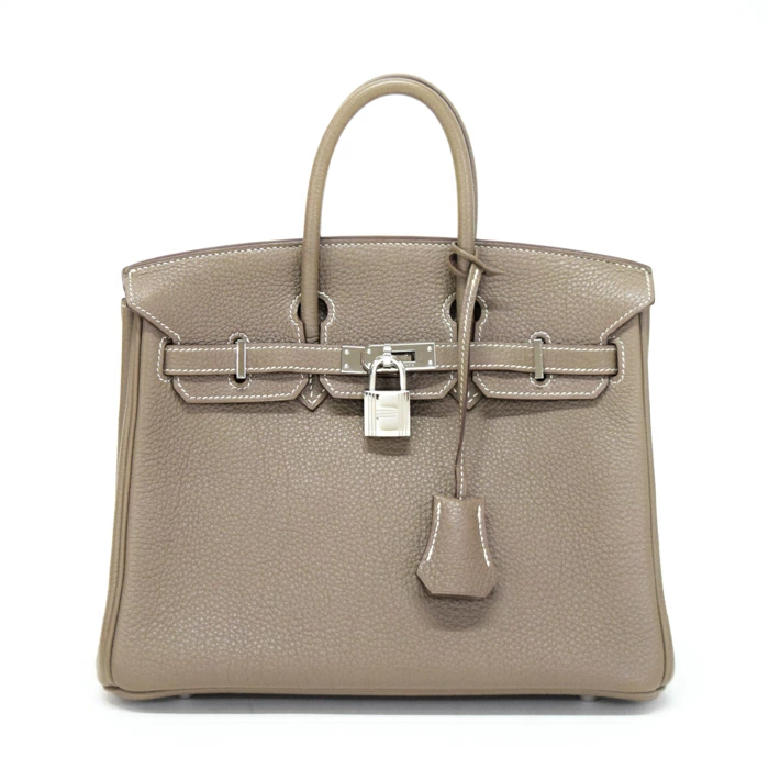 Product Name HERMES Birkin 25 Togo Leather Silver Hardware Handbag 2010 Etoupe (Greige) Brand Hermes Condition AB (Corner color repair / Scuff and Stain on the back of the handle) Material Togo Leather Color Etoupe (Greige) The actual color of the product may appear slightly different depending on your monitor setting. Size 25 / H7.4 / W9.8 / D5.1 (inches) / H19 / W25 / D13 (cm) Attachment Box / Bag / Rain Cover / Cadena / Clochette / 2 Key mark □N (Made in 2010) Model Number Birkin Serial - Item No. mbl30003 MAIN IMAGE Rank Definition N New and Unused with tags or box S Almost New without tags or box SA A product with minor signs of use/wear and defects, but in excellent condition A A product with a few signs of use/wear and defects, but in good condition AB A product with some signs of use/wear and defects, but in good condition B A product with several signs of use/wear and defects, but in fair condition l C A product with many signs of use/wear and defects, and in poor condition with problems D A product with many signs of use/wear and defects, and in poor condition with major problems Please Note: International Buyers ・Import duties, taxes, and charges are NOT INCLUDED in the item price or shipping cost. These charges are the buyer's responsibility. ・Please check with your country's customs office to determine what these additional costs will be prior to bidding or buying. ・Customs fees are normally charged by the shipping company or collected when you pick the item up. These fees are not additional shipping charges. ・We won't under-value merchandise or mark the item as a gift on customs forms. Shipping Service: EMS All services we use are insured with a tracking number. Payment After the bidding has closed, please make your payment within 2 days. If you do not, the unpaied item case will be opened automatically. The item will be shipped within 2 business days after the payment is received. Return Policy Returns accepted. If the item you received has defects which are not noted on the item description, please contact us with the reasons WITHIN 30 DAYS from the day you received it. About Us We have operated a consignment multi-brand boutique ""p.o.s.h."" more than 10 years in Tokyo, Japan. All our items are evaluated and guaranteed authenticity. Open: Weekdays 6:00 PM through 2:00AM PST