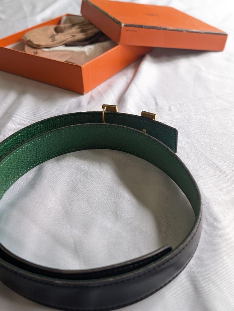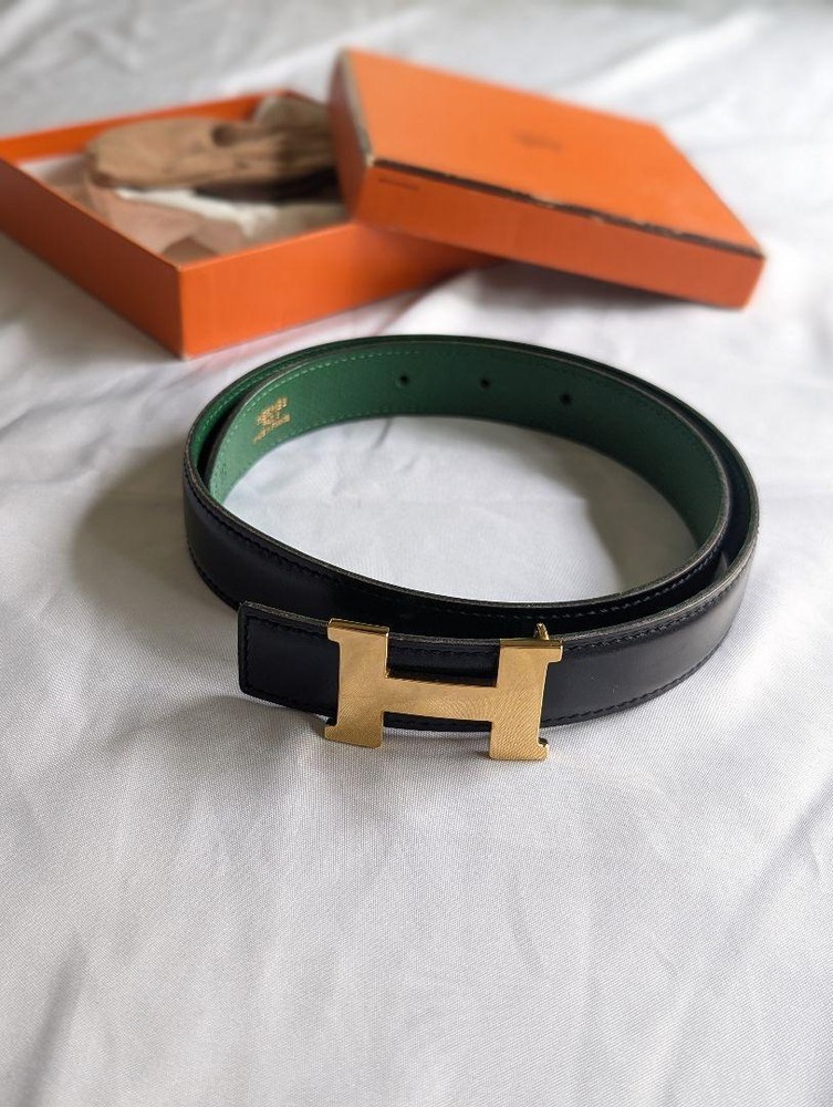 Description A belt with black leather H-shaped hardware and green lining. - Brand: HERMES - Color: Black/Green - Material: Leather - Design: H-shaped hardware Size: 2.5×80cm ◆Condition ◎Brand new and unused. ◎No scratches or stains, in good condition. ◎Box included, but has scratches ※Please check the photo again※ Shipping Standard Shipping (1~2 weeks): Small Packages Expedited Shipping (~7 days): EMS, FedEx, or DHL Arrival may be delayed due to global conditions. Please understand. International Buyers - Please Note: Import duties, taxes, and charges are not included in the item price or shipping cost. These charges are the buyer's responsibility. Please check with your country's customs office to determine what these additional costs will be prior to bidding or buying. Thank you for your understanding.