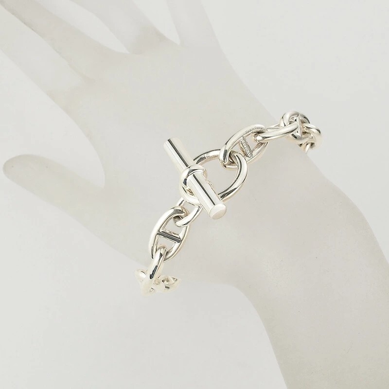 HERMES Chaine d’Ancre GM Silver Bracelet (I3042) International Buyers - Please Note *Import duties, taxes and charges are not included in the item price or shipping charges. These charges are the buyer's responsibility. *Please check with your country's customs office to determine what these additional costs will be prior to bidding/buying. *These charges are normally collected by the delivering freight (shipping) company or when you pick the item up - do not confuse them for additional shipping charges. *Your item bears a guarantee of 1 month against any manufacturing defects subject to conditions in the guarantee card. Description Size : Full Length 24.5(cm / including metal fittings) approx , Width 11.5(mm / excluding metal fittings) approx , Motif 11.5×20.7(mm) approx Material : SV925 Engraving : HERMES Ag925 Made in France Serial number Weight : 79.4g Accessories : None Item Ranking : SA(Polished) *Because they are all secondhand,so their accessories maybe aren't on perfect condition. (Damage may be present.) Ranking Standard: [N] New [S] Unused items. Goods in very good condition with no signs of having been worn or used. *It is possible to see slight changes in condition such as color fading or scratches due to display or storage. The following are used items. Please see the photos and purchase only if you understand the item. [SA] Used item in very clean condition with little signs of use [A] Used item in clean condition with some signs of use [AB] Used item in slightly clean condition with some signs of use and scratches [B] Used item with signs of daily use and scratches [C] Used item with signs of use and many scratches and dirt Used item [AQ] Antique or vintage items. Goods whose value may improve with the passage of time The product rank is a description of the condition of the item itself. It may not include the condition of accessories such as boxes, storage bags, and Warranty. *“2025 Product Rank Notation Modified” Our items have been used or worn in the past, so there will always be some scuffs and scratches. Due to space limitations, we are unable to list all scratches. The photos are of the actual item. Sizes are actual measurements, but may vary slightly. Also, there may be slight differences in the colors in the photos. Please keep the above in mind before purchasing. Payment The item will be shipped within 5 business days after the payment is received. If payment can't be confirmed within 3 days after the close of the auction, a reminder will be sent to you. Shipping We only ship to eBay registered address. Service: DHL (Fedex for amounts exceeding 800,000) Return Policy No returns accepted. About Us Our items are inspected by brand experts and are all 100% authentic. As a dealer of all pre-owned brand-name merchandise, we are licensed by the Japanese government to sell pre-owned brand-name merchandise. We are duly registered as a legitimate business and must comply with all rules and regulations, including taxes, from the Japanese government. Please feel free to contact us if you are concerned about the condition of any of our products, as there may be minute dust, scratches, or watch accuracy that we are unable to remove. Your satisfaction is our first priority. Copyright © 2013 Interproud Inc. All rights reserved.