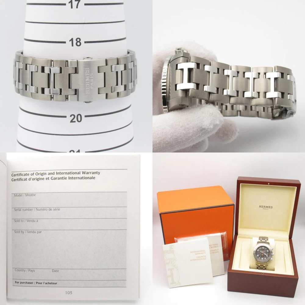 HERMES Clipper Classic Diver Chrono Wrist Watch CP2.941 Automatic SS Used mens Description / Specification Brand Name HERMES Item Name HERMES Clipper Classic Diver Chrono Wrist Watch CP2.941 Automatic SS Used mens Color Gray‐ish colors Material Stainless Steel × titanium Size Band Width:about 22mm Accessories Storage box/Guarantee/ Accessories not stated are not included. (If there is no mention of a box or dust bag, they are not included either.) Type For Men Movement Automatic winding Features Date display Chronograph Waterproof Waterproof 100M Case Diameter 44mm Case diameter(1.7" Case diameter)Without crown Wrist Size(Approx) 〜18.5cm(-7.3") Remarks In the case of the watches that the material of belt made of Crocodile and Ostrich as restricted by the Washington Convention, we ship only the case of the watch and buckle, buckle tongue by removing the belt.It would be great if you would understand this. Instore Code 2101218378375 Up Date 2024/12/07 Condition Pre-owned used Wrist Watch by HERMES in good condition . Outside Condition There is some usability, scratches, rubbing, and stain. There are some signs of wear. *This product has been polished, but there may be small scratches that cannot be removed. Thank you for your understanding. Remarks There is a stain and scratch on the case and belt. Please take a look at the descriptions and the pictures above to check the condition of the item before the purchase. Rank Pristine New, Not used. Excellent Excellent, Allmost as good as new. Very Good A slightly used. Good There are a few scratches, stains and looks a little used. Fair + There are some noticeable scratches and stains. Looks used. Fair There are some noticeable scratches and stains. Looks obviously used. Poor + There are many scratches and stains. Looks very used. Poor Looks very used, but still usable. About Authenticity We have a large selection of luxury brand products We guarantee that all of the items we list and sell are authentic. Feel free to contact us if you have any inquiries or concerns. We are approved seller from Tokyo Metropolitan Police License No : 301061906960(Used Item Seller ) In addition, We also are a member of the Association Against Counterfeit Product Distribution (AACD), and we promise to have no bogus under any circumstances. Please read before order Shipment cannot be marked as a 'gift' or with altered price due to the custom declaration laws. Import duties, taxes, or other additional fees will be charged by your local customs. We are not responsible for any customs and taxes applied to your order. All fees imposed during or after shipping are the responsibilities of the customer (tariffs, taxes, etc.). Please inquire the details of import duties or taxes at the customs office in your country directly before making an order. Payment & Shipping Payment We only accept payments via Managed Payments. Shipping All items will be shipped from Japan. We can only make shipment to the registered address with your ebay account. All orders are processed within 3-5 business days. Orders are not shipped on weekends or holidays. 1.Shipments will be made by DHL. 2.For orders which are not able to be shipped by DHL, they will be shipped by Fedex or UPS. 3.Orders for China will be shipped via EMS of the Japan Post. 4.We currently suspend shipping services to APO/FPO, Brazil, Chile, Indonesia, Mexico, Peru, Philippines, Russian Federation, and Ukraine. Delivery time 1.Delivery usually takes approximately 3-10 business days 2. Shipments might be delayed due to the following reasons: a)Bad weathers b)Public holidays c)Delay at the customs office Returns/Cancellation Policies As we selling our items on other websites and in our retail stores in Japan at the same time, if the item was sold out before your purchase, your order will be cancelled with a full refund Customers are allowed to return the item within 30 days from the delivery or pick up date for a full refund. Items without the security tag are not allowed to be returned. All fees imposed during the return shipping are the responsibilities of the customer Please contact us before starting a return Please provide us the tracking number once return shipment is made. If the mistake caused by human error is occer, please forgive me for cancelling by us. See more Policies & Description