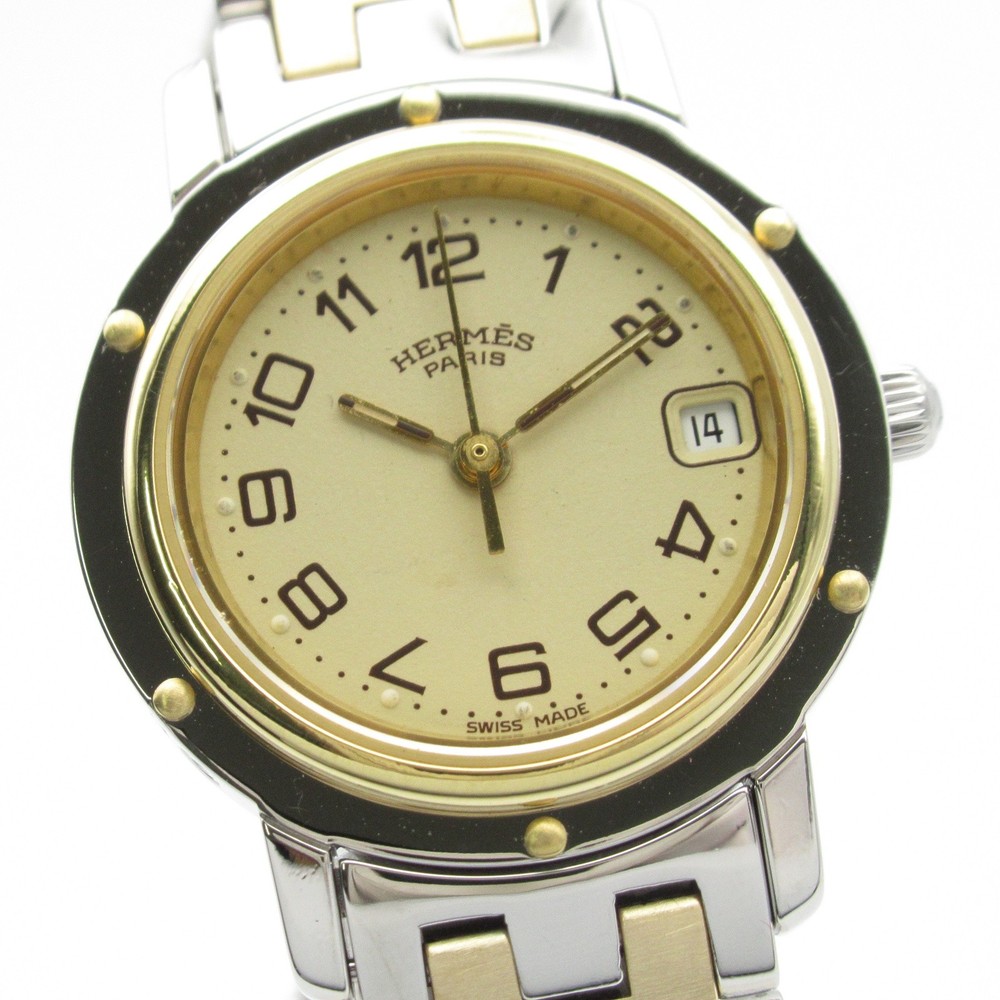 HERMES Clipper Wrist Watch CL4.220 Quartz Gold Plated Stainless Steel Used Women Description / Specification Brand Name HERMES Item Name HERMES Clipper Wrist Watch CL4.220 Quartz Gold Plated Stainless Steel Used Women Color Beige‐ish colors Material Gold Plated × Stainless Steel Size Band Width:about 12mm Accessories None Without box, case, dust bag, warranty card, or other accessories. Only the main unit will be shipped. Type For Ladies Movement Quartz Features Date display Waterproof Daily life waterproof Case Diameter 24mm Case diameter(0.9" Case diameter)Without crown Wrist Size(Approx) 〜13.5cm(-5.3") Remarks In the case of the watches that the material of belt made of Crocodile and Ostrich as restricted by the Washington Convention, we ship only the case of the watch and buckle, buckle tongue by removing the belt.It would be great if you would understand this. Instore Code 2101218834437 Up Date 2025/06/14 Condition Pre-owned used Wrist Watch by HERMES in good condition . Outside Condition There is some usability, scratches, rubbing, and stain. There are some signs of wear. *This product has been polished, but there may be small scratches that cannot be removed. Thank you for your understanding. Remarks The battery was replaced in June 2025. There are scratches and dirt on the crystal, case, and belt. Please take a look at the descriptions and the pictures above to check the condition of the item before the purchase. Rank Pristine New, Not used. Excellent Excellent, Allmost as good as new. Very Good A slightly used. Good There are a few scratches, stains and looks a little used. Fair + There are some noticeable scratches and stains. Looks used. Fair There are some noticeable scratches and stains. Looks obviously used. Poor + There are many scratches and stains. Looks very used. Poor Looks very used, but still usable. About Authenticity We have a large selection of luxury brand products We guarantee that all of the items we list and sell are authentic. Feel free to contact us if you have any inquiries or concerns. We are approved seller from Tokyo Metropolitan Police License No : 301061906960(Used Item Seller ) In addition, We also are a member of the Association Against Counterfeit Product Distribution (AACD), and we promise to have no bogus under any circumstances. Please read before order Shipment cannot be marked as a 'gift' or with altered price due to the custom declaration laws. Import duties, taxes, or other additional fees will be charged by your local customs. We are not responsible for any customs and taxes applied to your order. All fees imposed during or after shipping are the responsibilities of the customer (tariffs, taxes, etc.). Please inquire the details of import duties or taxes at the customs office in your country directly before making an order. Payment & Shipping Payment We only accept payments via Managed Payments. Shipping All items will be shipped from Japan. We can only make shipment to the registered address with your ebay account. All orders are processed within 3-5 business days. Orders are not shipped on weekends or holidays. 1.Shipments will be made by DHL. 2.For orders which are not able to be shipped by DHL, they will be shipped by Fedex or UPS. 3.Orders for China will be shipped via EMS of the Japan Post. 4.We currently suspend shipping services to APO/FPO, Brazil, Chile, Indonesia, Mexico, Peru, Philippines, Russian Federation, and Ukraine. Delivery time 1.Delivery usually takes approximately 3-10 business days 2. Shipments might be delayed due to the following reasons: a)Bad weathers b)Public holidays c)Delay at the customs office Returns/Cancellation Policies As we selling our items on other websites and in our retail stores in Japan at the same time, if the item was sold out before your purchase, your order will be cancelled with a full refund Customers are allowed to return the item within 30 days from the delivery or pick up date for a full refund. Items without the security tag are not allowed to be returned. All fees imposed during the return shipping are the responsibilities of the customer Please contact us before starting a return Please provide us the tracking number once return shipment is made. If the mistake caused by human error is occer, please forgive me for cancelling by us. See more Policies & Description