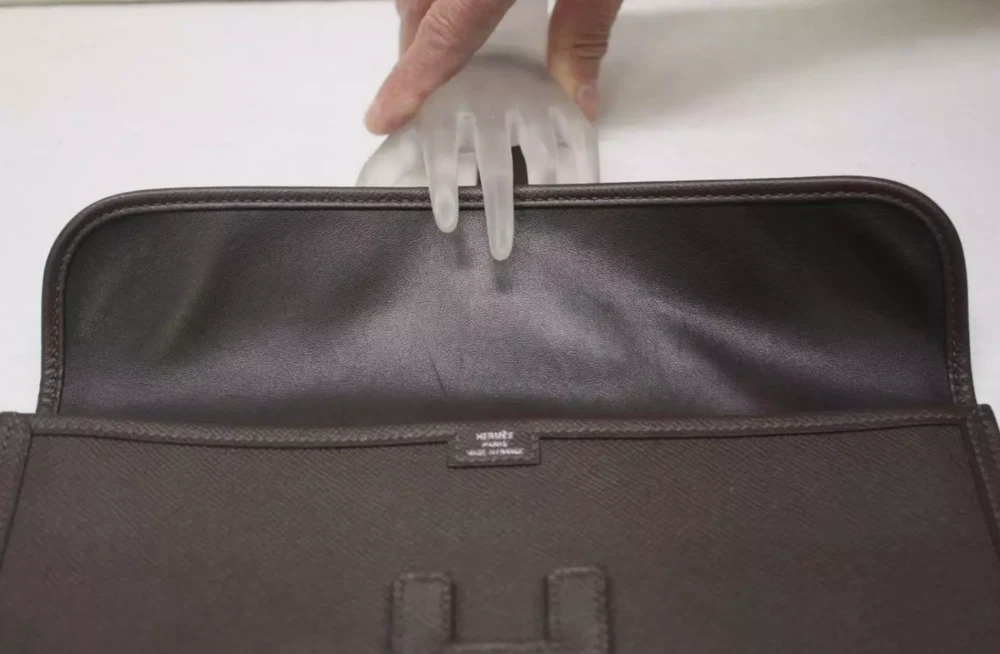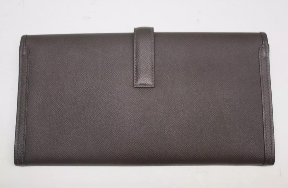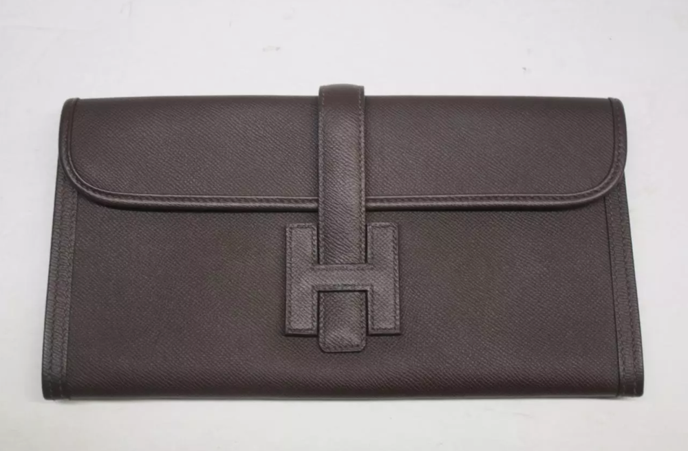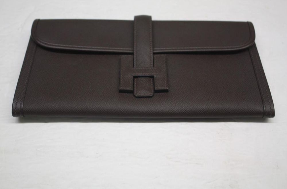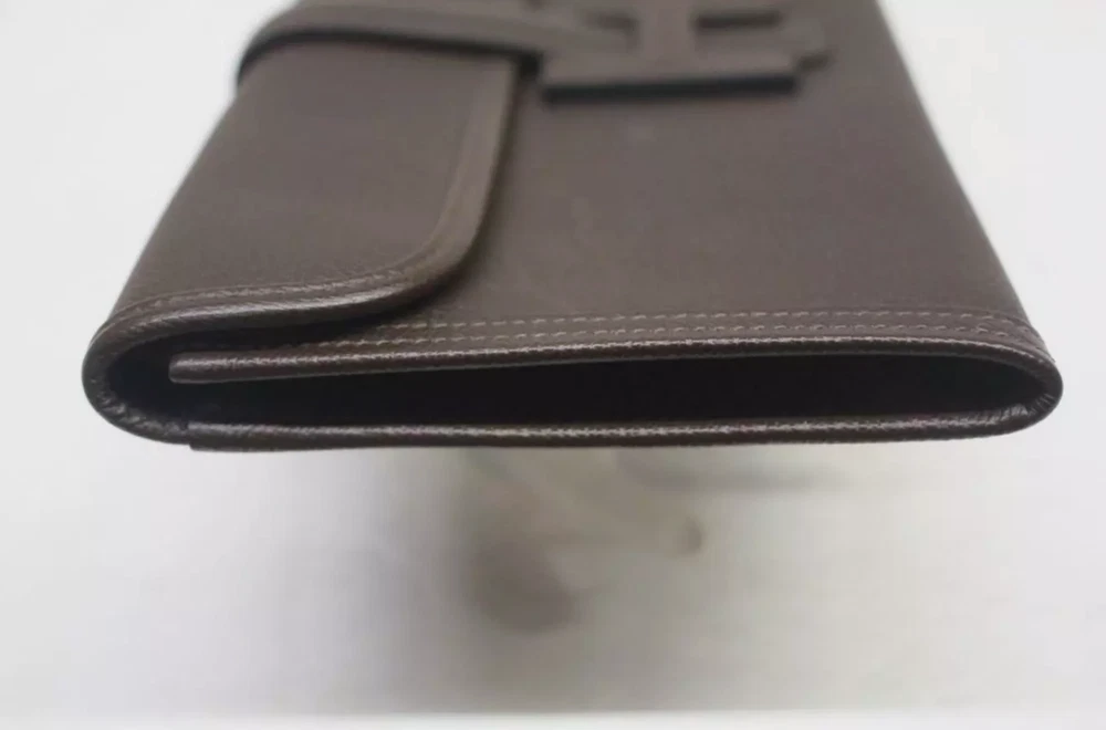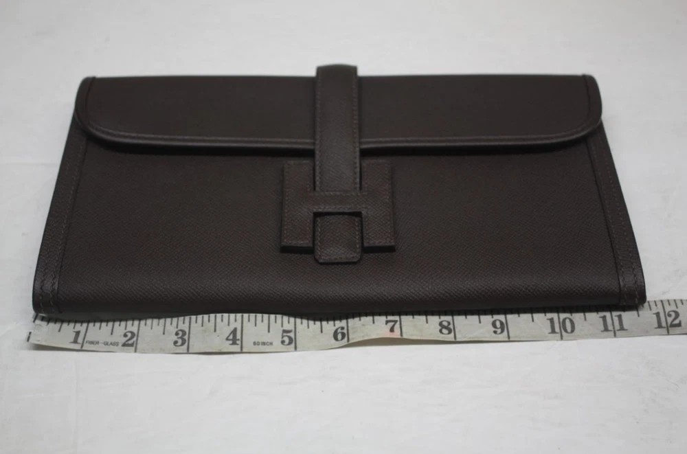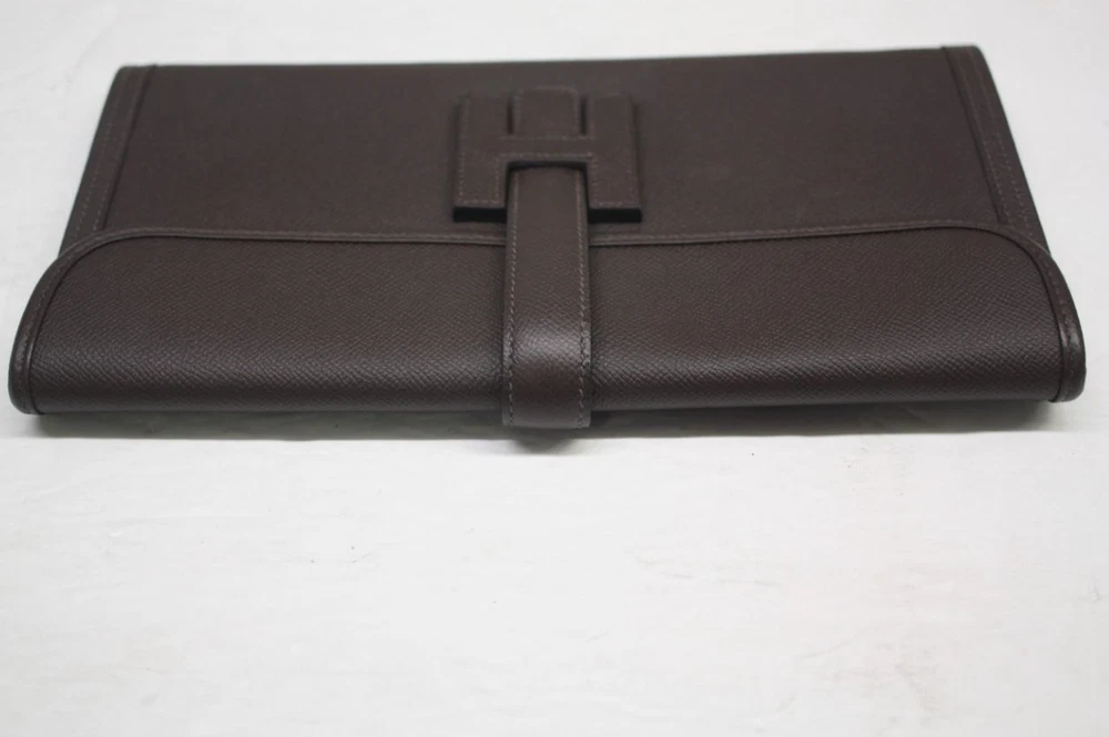 HERMES Dark Brown Epsom Leather Jige Elan 29 Clutch Bag Retail $3,725 Authentic **HAS A RED SECURITY TAG #1110522, IF TAG IS MISSING OR HAS BEEN TAMPERED WITH, RETURNS WILL NOT BE ACCEPTED** Designer: Hermes Material: Orange Epsom leather Includes: Hermes dust bag & box Origin: France Production Year: 2015 Date/Authenticity Code: T*018 AK Measurements: 11.5" L x 1" W x 5.75" H Closure/Opening: Flap top Interior Lining: Lambskin leather