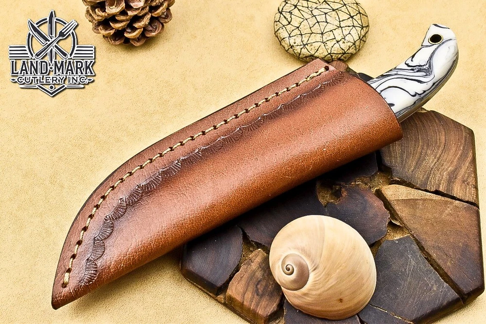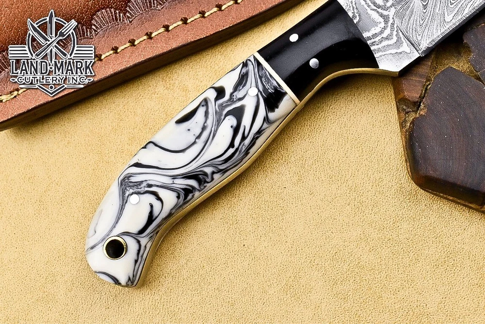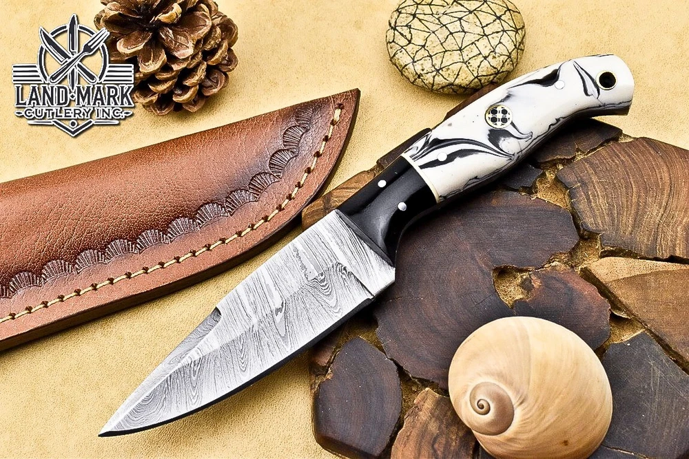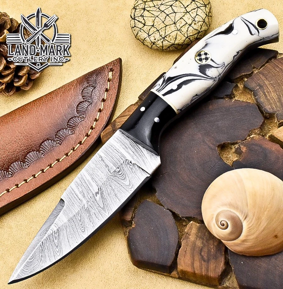 Custom Hand Made DAMASCUS STEEL HUNTING KNIFE WITH RESIN HANDLE We offer a shipping discount for More then one purchased . And discount will be apply on combine invoice, Discount will not apply on separate payment. ITEM DETAILS OVER ALL LENGTH 8.0 inches long (Approx) HANDLE LENGTH 4.0 inches long (Approx) BLADE LENGTH 4.0 inches long (Approx) BLADE HARDNESS 58-60 HRC Which Holds The Sharp Edge For Long Time. HANDLE RESIN COVER LEATHER SHEATH This Awesome custom made KNIFE has a nice hand forged with the combination of 4340 & 1080 steel. HOW OUR DAMASCUS IS MADE: All our Damascus is real and not just an acid etch. Damascus is a mixture of 1080HC and 4340 nickel carbon. You heat them up together and then fold the bar over and over to get the desired layers, ours are 396 layers. Then you burn the blade in acid, and it turns the nickel satin color and the high carbon turns blackish gray. This is how the layers are exposed to show the layers of the new steel created coined "Damascus". All Damascus is acid etched to show the layers. If you high polish the metal it will be shinny satin like all steels. Only after you burn the sides of the blade with acid do you see the layers of the two steels. Makes sense? After we make our knives we high polish the handles and put an edge on the blade. The high polishing buffs off the acid burned layer of the handle, and the blade edge is sharpened and the acid burned edge becomes satin. You can re-burn the tang of the blade near the handles and the edge of the blade and it will show the layers once more. All our knives are hand made, durable and unique ***** YOU WILL RECEIVED THE SAME KNIFE Qality Standards Our Damascus blades are made from high quality non-stainless steels which rival or exceed any Damascus blade made from the 10 series with 4340. Our Damascus combination has taken years to perfect and has been tested under a variety of application which will offer professional performance in categories of toughness, strength (lateral stress) and edge honing and holding ability. In a 5 spot Rockwell test our blades will average near or close to 58 which offers a perfect balances between its toughness and strength.Our blades due to carbon content need to be regularly treated with wax and/or 3 in 1 oil to maintain its superior quality. Questions if you have any question feel free to send us message we aim to answer all questions within 24 hours Feedback If you are not satisfied with our service please contact us before leaving any negative or natural feedback. We will resolve all issues as quickly as possible. Disclaimer We are not responsible for any injuries associated with the use of our tools. Our products are intended for legal use only by responsible buyers. Therefore, we will not sell our products to anyone under the age of 18. Before bidding please check your country laws as some countries Custom don't allow this. If your purchase is held by Custom Authorities in your country/State we will not be responsible for that and no refund will be issued Shipping We offer a 20% shipping discount for More then one purchased . And discount will be apply on combine invoice, Discount will not apply on separate payment We ship within 24 hours after receiving complete payment but this can be delayed due to week ends or Governments and Religious Festivals . . This is beyond our control and we apologize for this inconvenience. Precautions Our Tools are very sharp so open and use them very carefully We are not responsible for any injuries associated with the use of our tools Tips to Care knife 1. NEVER STORE YOUR KNIFE FOR LONG TIME IN LEATHER SHEATH. 2. LEATHER CAN ABSORB WATER, WHICH WILL RUST THE KNIFE. 3. ALWAYS CLEAN THE BLADE AFTER USING WITH OIL OR WAX