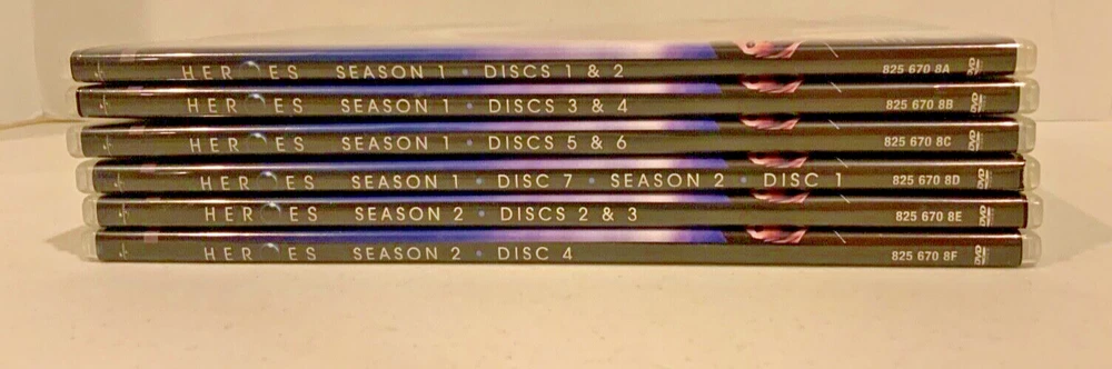 This is for Season One & Two of TV Series HEROES. The CD’s are in great condition and the case is also in gOOD condition with a little wear on bottom from shelf wear. They are from a smoke free home, please review all pictures and if you have questions just ask. I have 100's of DVD movies, VHS movies, CD's, Albums, & Cassettes of music,... country, Christmas, Classical, Rap & Soul, 30's thru 60's, Modern rock, & German and other foreign tapes...... Please ask for something you want and I might have it. These come from a smoke free home, kept in A/C, good quality products. I combine postage, use your CART to put multiple items in and REQUEST TOTAL FROM SELLER so I can get you the best shipping rate I can.