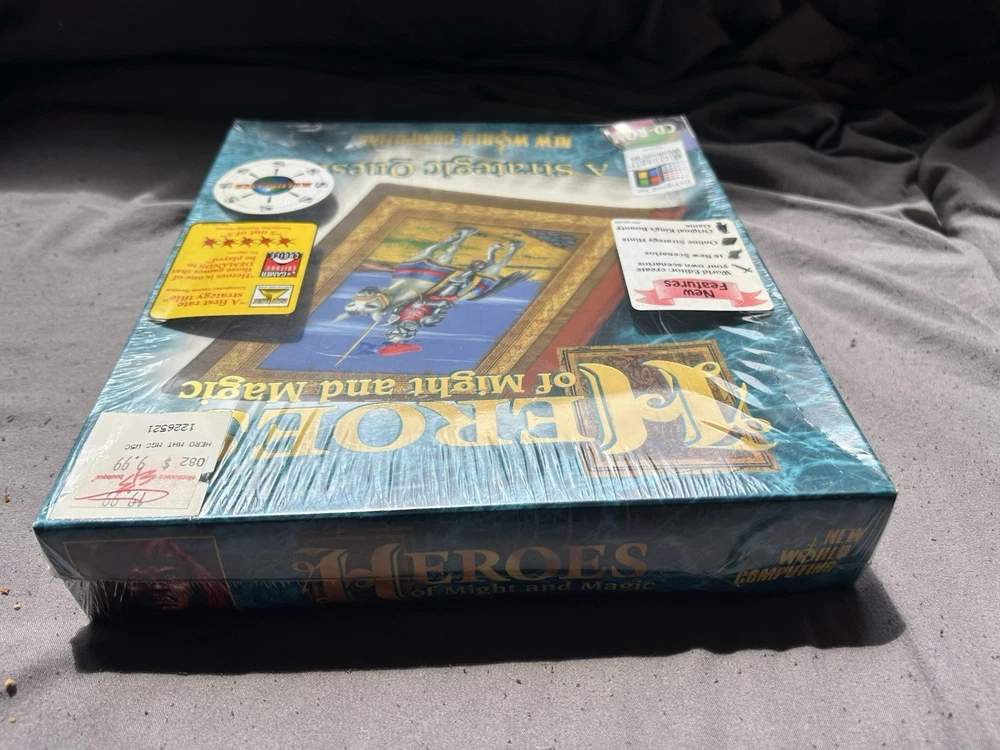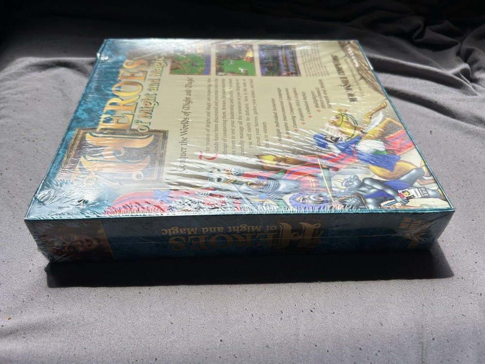 The product is a brand new sealed copy of the "Heroes of Might and Magic" PC CD-ROM game from 1996. Published by New World Computing, the game is a part of the "Heroes of Might and Magic" series and features the sub-genre of boxing. This E-Everyone rated game offers exciting gameplay on the PC platform, providing a thrilling experience for players of all ages. Perfect for collectors or fans of the franchise, this mint condition big box edition is sure to delight any gamer looking for a classic addition to their collection.