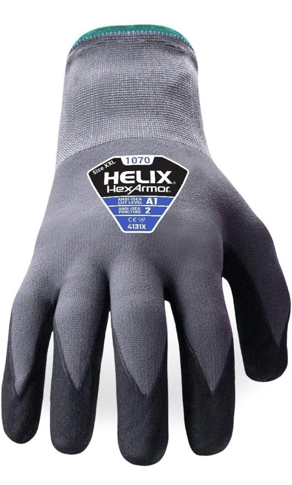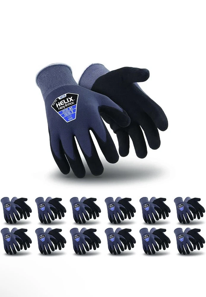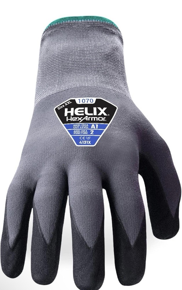 Experience enhanced hand protection with the HEXARMOR 1070 Cut Resistant Work Gloves. Designed for demanding tasks, these gloves offer a comfortable fit in a size large, ensuring your hands are snugly enveloped during use. The 6 pairs included in this offering provide practicality for multiple work sessions or to have spares on hand for varying needs. Crafted from high-quality latex rubber, these gloves from Microflex, model Ansell Microflex SG-375, are designed to withstand the rigors of facility maintenance and various industrial applications. They are ideal for those in need of reliable personal protective equipment, with a focus on maintaining dexterity and comfort throughout the workday.
