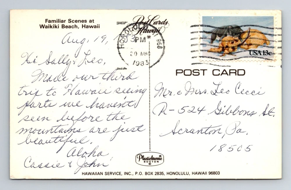 Unit of Sale: Single Unit Era: Chrome (1939-Present) Subject: Cities & Towns Theme: Cities & Towns City: Waikiki Country: USA Type: Printed (Lithograph) Postage Condition: See Image Country/Region of Manufacture: Unknown Region: Hawaii Original/Licensed Reprint: Original
