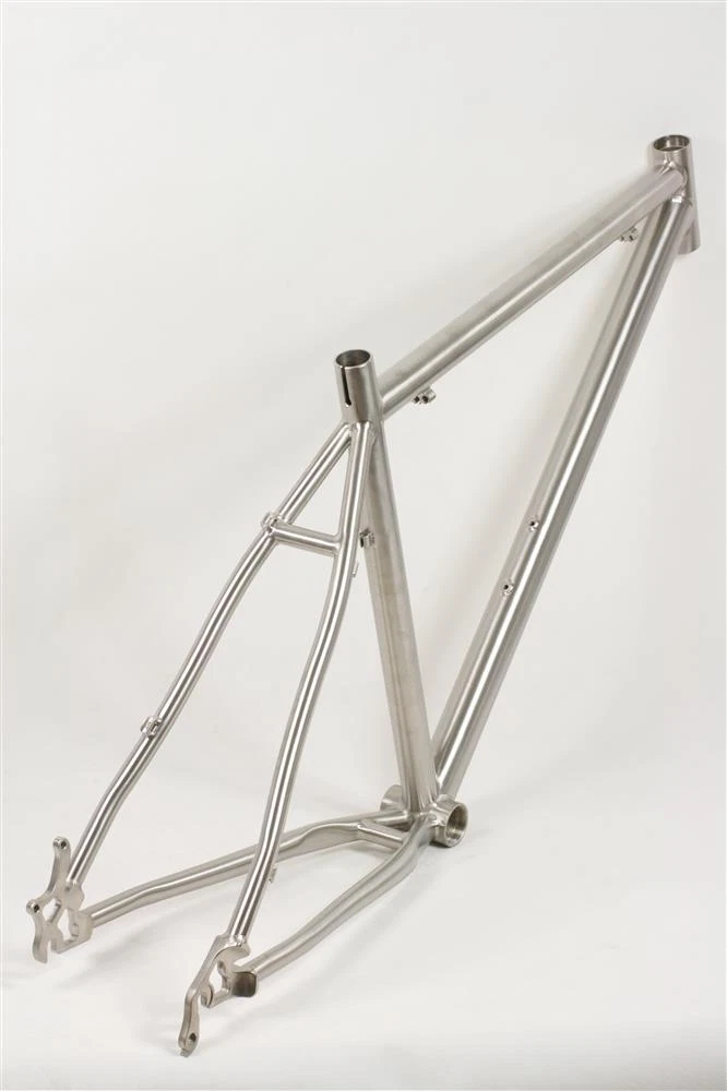Item Description HI-LIGHT titanium frame,professional design and beautiful craftwork,hydraulic forming technology *Cold-worked 3Al/2.5V seamless hydraulic forming titanium tubing. *New design down tube,improved stiff of BB. *1-1/8" CNC machined head tube *Polished finish *Use 27.2mm seatpost *68xBSA1.37”x24T BB shell *With rack install holes and fender holes 1.Titanium alloy have intension strength 75% greater than most aluminum and steel used in cycling 2.Titanium frame easy absorb small shock like steel frame,more comfortable than aluminum frame. 3.Titanium frame 5 times fatigue life than steel or aluminum frame,We offer lifetime warranty for our titanium frame. 4.We accept custom build frame,offer best frame with suitable geometry size to rider. 16(S) 18(M) 20(L) A-Seat tube length 406 457 508 B-S/T angle 73.5 73 73 C-Effective top tube length 574 594 614 D-H/T angle 70.5 70.5 70.5 E-Head tube length 117 130 145 F-Chains stay length 424 424 424 G-Wheel base 1062 1077 1097 Returns for any reason will not be accepted. Shipping tips American buyers, This product will be shipped from the US warehouse within 30 working days after payment Buyers from other regions please contact me before purchasing to confirm the shipping method