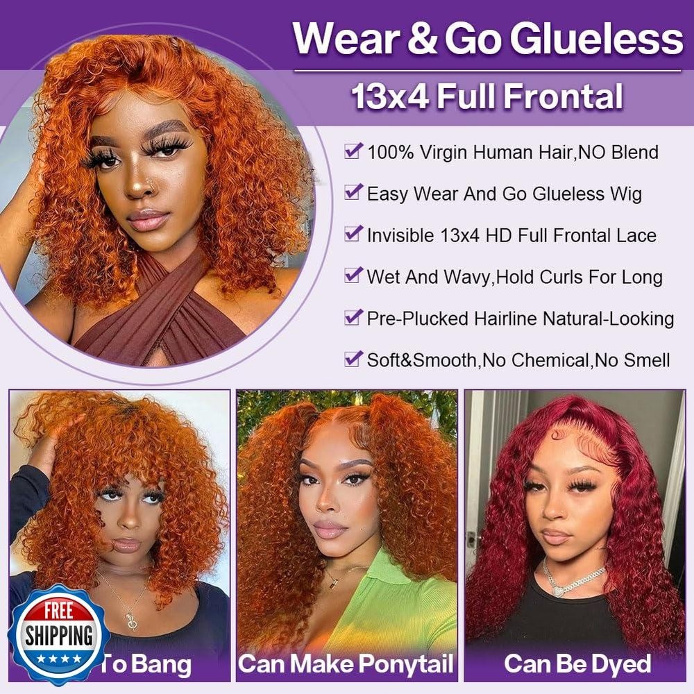 HIRIREMY Orange Ginger Lace Front BOB Wigs Human Hair Deep Wave 13x4 HD Short Frontal Curly BOB Wigs For Black Women Human Hair Pre Plucked Wear And Go Glueless Ginger Orange 350 16 Inch Features 1. Ginger BOB Wig Human Hair Deep Wave Curly Material: This Ginger Orange Deep Wave Lace Front BOB Wigs Human Hair Is Made Of High Quality 10A Grade Unprocessed Virgin Brazilian Human Hair, Which Cut From Young Healthy Donor. Can Be Dyed, Restyled Or Straightened As Your Own Hair 2. 350 Orange Ginger Lace Front Wigs Human Hair BOB: No Shedding & No Tangle, Soft & Bouncy, Full & Thick, Wet & Wavy, Blunt Cut, No Chemical, True To Length, 180% Density, Hold Curls For Long Time. Average Cap Circumferences Size (21.5 Inch To 23.5 Inch) Fit For All Head Size With Adjustable Straps 3. 13x4 HD Transparent Lace Base Wig Cap: Invisible HD Lace Matched For All Skin Tones, Can Be Bleached And Melted Perfectly, Breathable, Comfortable Deep Wave Bob Lace Front Wigs Human Hair Pre Plucked Natural Looking Hairline With Baby Hair Around. Can Do Free/ Middle/ Side/ C Part And High Ponytail 4. Beginner Friendly Glueless Orange Ginger Deep Wave Frontal BOB Wigs: Ready To Wear And Go Glueless Wigs Human Hair Pre Plucked Pre Cut Wet And Wavy Deep Wave Curly Lace Front Wig Human Hair. No Glue, No Gel, Easy To Install, Adjust And Take Off With Removable & Adjustable Elastic Band. Secure & Stable 5. Suit For Any Occasions: Such As Birthday, Appointment, School, Travel, Theme Party, Celebration, Wedding, Graduation, Vacation, Daily Life, And So On Shipping Free & Fast Shipping: We offer free shipping to most of the USA with a normal delivery time of 3-7 days. However, due to the current situation, additional delivery time (up to 3 weeks) may be required for some items. Alternative Carriers: We may use alternative carriers (e.g., USPS, FedEx, UPS) to ensure your package arrives safely and on time. Due to the use of multiple carriers, we are unable to provide a tracking number automatically. Handling Time: Orders are processed and shipped within 1-2 business days of receiving cleared payment. Shipping Restrictions: Shipping to Alaska, Hawaii, Puerto Rico, Guam, and other US territories may incur shipping charges or delivery restrictions. Please contact us before ordering, or your order can be refunded/cancelled. State Restrictions: Certain items may not be shipped to California due to state regulations. Contact for Tracking Updates: If you require tracking updates or have any concerns about the delivery of your order, please feel free to contact us, and we will be happy to assist you. Return Policy 30-Day Hassle-Free Returns: If you are not completely satisfied with your purchase, you can return the item for free within 30 days of receiving it for a full refund or exchange. Easy Return Process: Contact us, and we will provide you with a prepaid return shipping label and detailed instructions. No Restocking Fee: There are no restocking fees for returns. However, the buyer is responsible for return shipping costs if the return is not due to a seller"s error. Refund Processing: Refunds will be processed within 1 business day of receiving the returned item in its original condition. Feedback Your feedback is extremely important to us. We strive to provide the best products and customer service possible. If you are satisfied with your purchase, please take a moment to leave us a positive review. If you have any concerns or issues with your order, please contact us before leaving negative feedback. We are committed to resolving any problems and ensuring your satisfaction. Contact Us If you have any questions or concerns, please feel free to reach out to our customer support team. You can contact us through the eBay messaging system. We are available Monday to Friday, 9:00 am to 5:00 pm EST, and we will do our best to respond to your inquiry within 24 hours. Thank you for supporting our small family business!