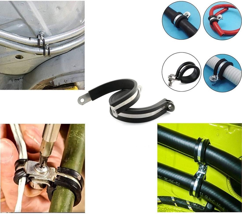HJ Garden 6pcs 2 inch(50mm) Rubber Cushioned Cable Clamp 304 Black,metallic Product Details Manufacturer: HJ Garden Part Number: PCLAMP-50MM-6 Item Weight: 5.6 ounces Package Dimensions: 4.7 x 4 x 0.7 inches Item model number: PCLAMP-50MM-6 Color: Black,metallic Style: Round Material: Stainless Steel, Ethylene Propylene Diene Monomer Rubber Item Package Quantity: 6 Batteries Included?: No Batteries Required?: No Material: Stainless Steel, Ethylene Propylene Diene Monomer Rubber Brand: HJ Garden Color: Black,metallic Style: Round Manufacturer: HJ Garden Package: Pack of 6pcs 2 inch (50mm) Stainless Steel Rubber Cushioned Cable Clamp, fit for the connection of wire, pipe, hoses or cables of (outer diameter) 2 inch panels or frames applications. Made of high Quality 304 Stainless Steel, combined with insulated EPDM rubber pad, corrosion and rust resistant, water-proof, can be used repeatedly, long service life. Fine workmanship, right side up rivet sheet, smooth, round without burrs, screw hole diameter is 1/4 inch (6.5mm). Rubber gasket can slow down the vibration and turbulence, reduce the abrasion of cables and hoses, fit closely with hose and cable, to make sure the clamp firmly fixed in place. Convenient to use, easy to twist, bend and operate, suitable for installing and repairing various types of cable pipes, widely used in hoses, steel pipes, ships, windshields, automobiles, UTV and home etc. Specification: Material: 304 Stainless Steel, EPDM Rubber Clamp Inner Diameter: 2 inch (50mm) Screw Hole Diameter: 1/4 inch (6.5mm) Metal Sheet Width: 3/5 inch (15mm) Clamp Width (Including Rubber Pad): 5/7 inch (Approx. 18mm) Rubber mat has the function of reducing vibration, preventing friction and insulating, and protecting the fixed rigid pipe, hose and cable. The cable clamp is used for the connection of soft and hard pipes, with fixed action. It is suitable for installing and repairing various types of cable pipes, such as hoses, steel pipes, rubber pipes, gas pipes, pipes, fuel pipes, aluminum cables and so on. Widely used in ships, cars, construction, mechanical engineering, aircraft, refrigeration machinery, windshield, UTV and home applications etc. Package Include: 6pcs Stainless Steel Rubber Cushioned Cable Clamp