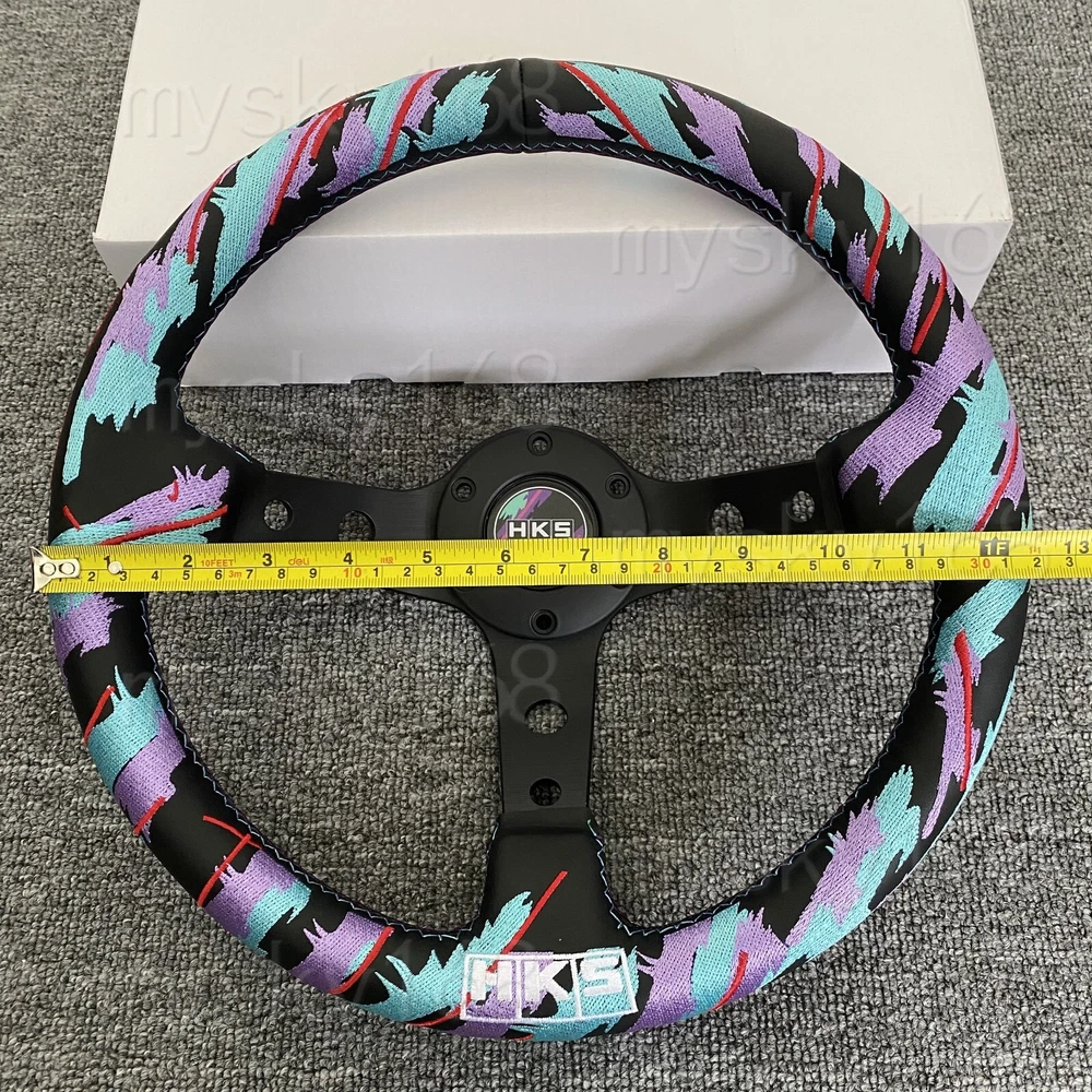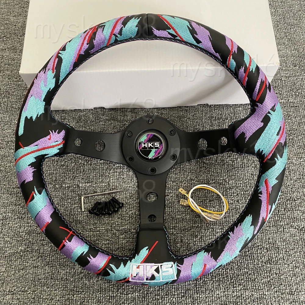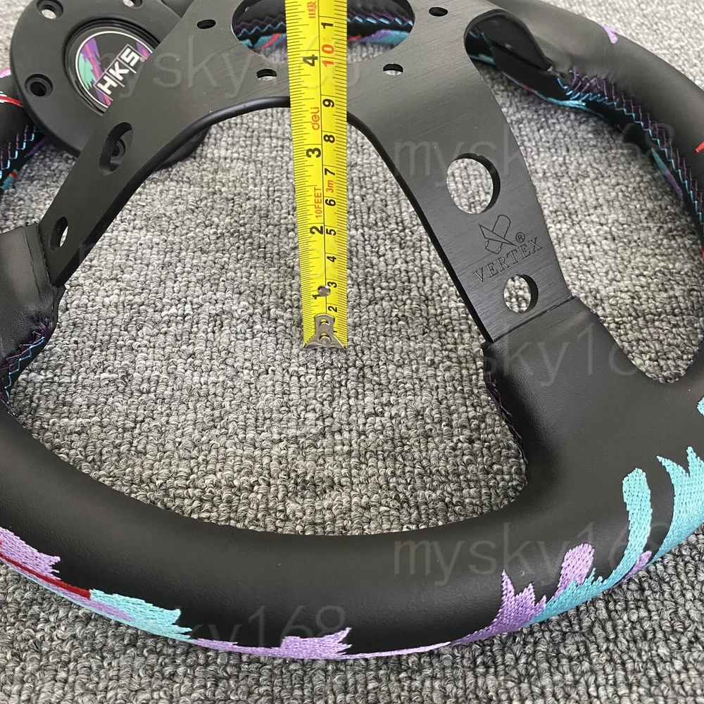 Specifications: 100% Brand New Material: Perforated leather + aluminum frame Color :Same as picute show Diameter: 325mm/13inch Deep Dish: 85mm Lightweight and Durable Alloy Spoke Wrapped with Perforated leather Excellent Hand Stiches Standard 6 Bolt fitment, 70mm PCD Fit most type of aftermarket boss kit Package Content: 1x Steering Wheel 1x Horn Button& cover Horn wire and screws
