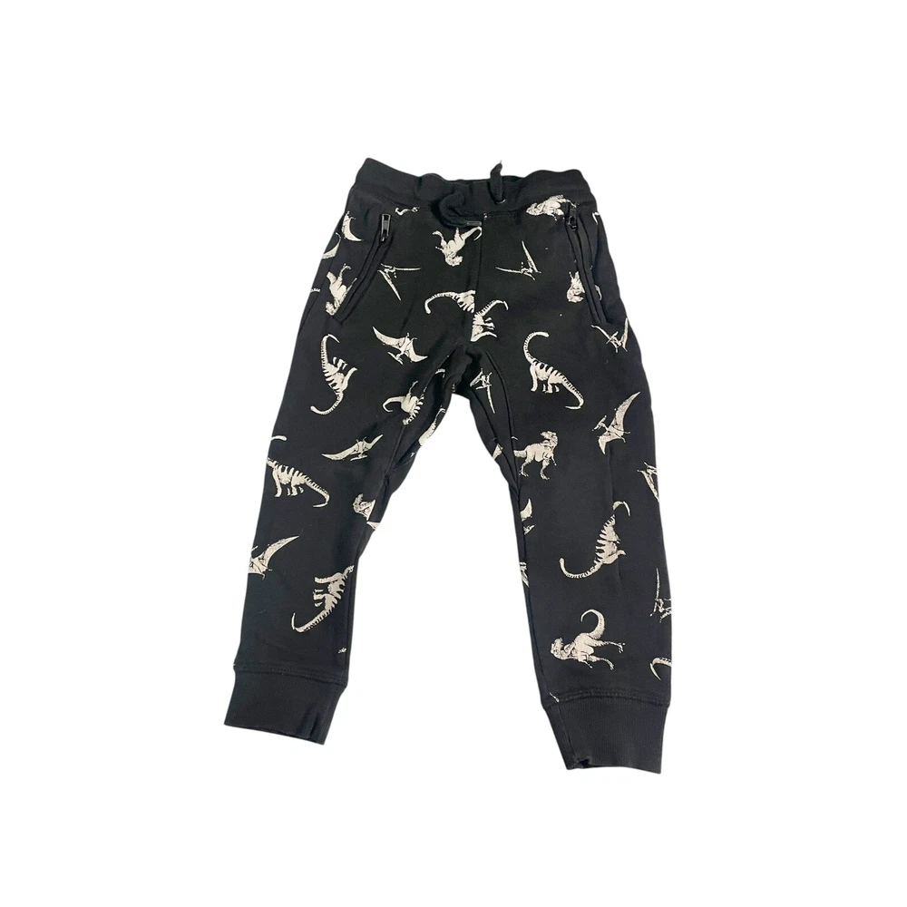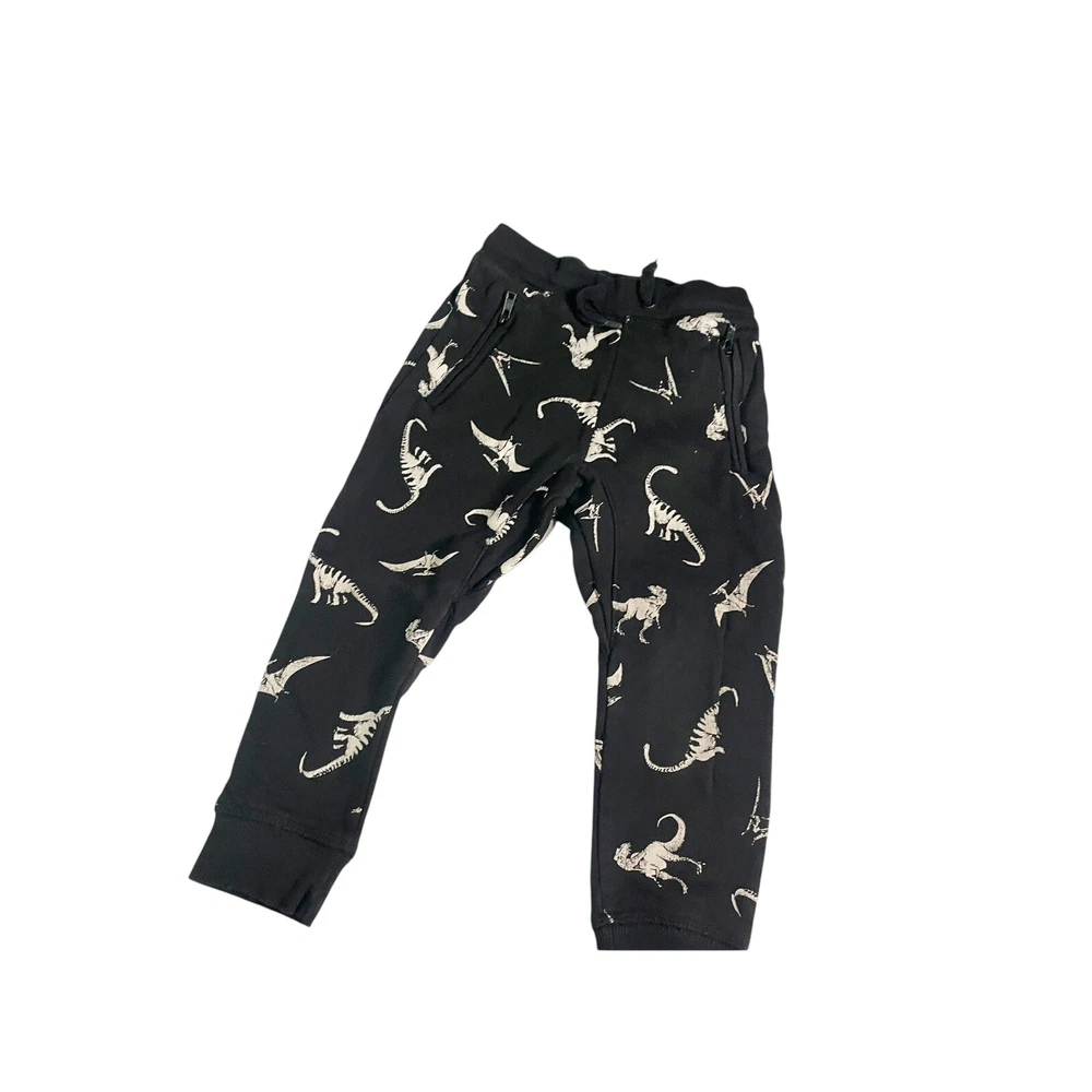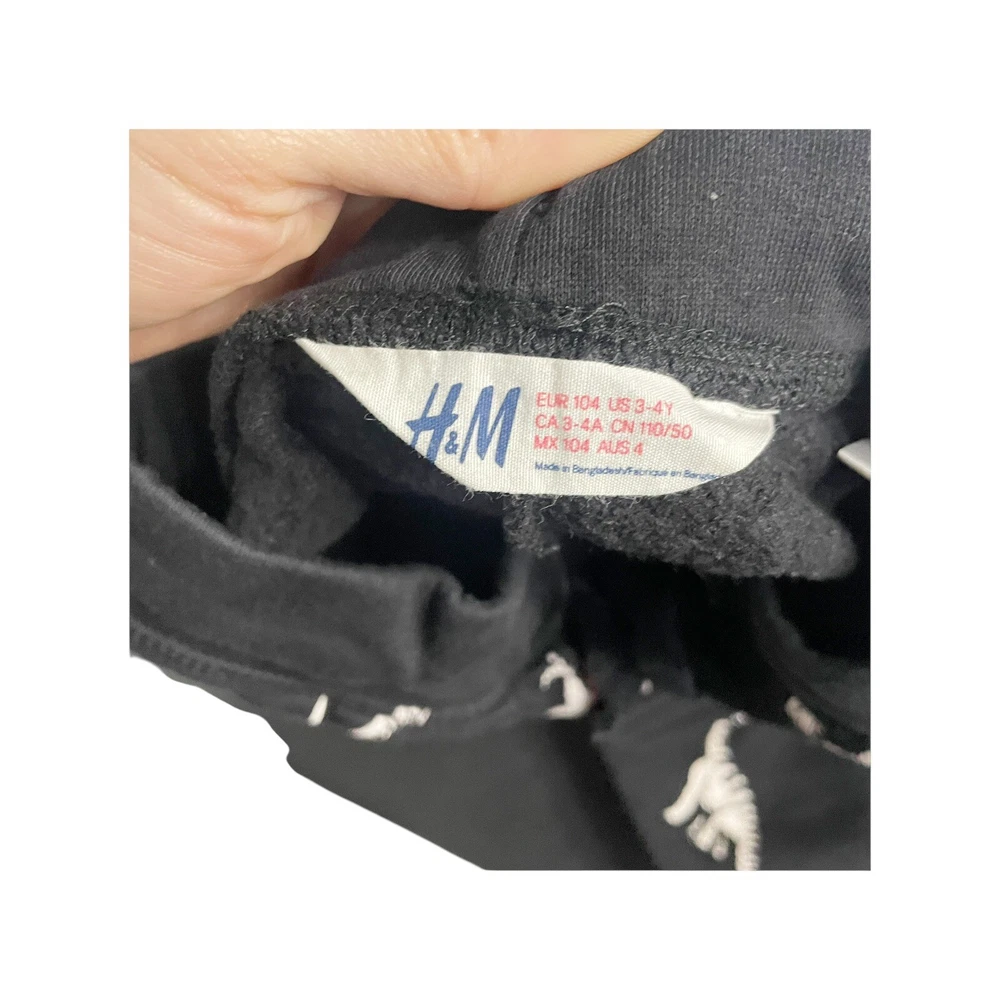 These are H&M black cotton stretch sweatpants for boys in size 4. They feature a dinosaur theme and have a pull-on closure. Perfect for a comfortable and stylish look for any young boy who loves dinosaurs. in excellent condition All Measurements Are Approximate Please email us with any questions! ** LIKE THE ITEM BUT NOT THE PRICE, REASONABLE OFFERS ACCEPTED