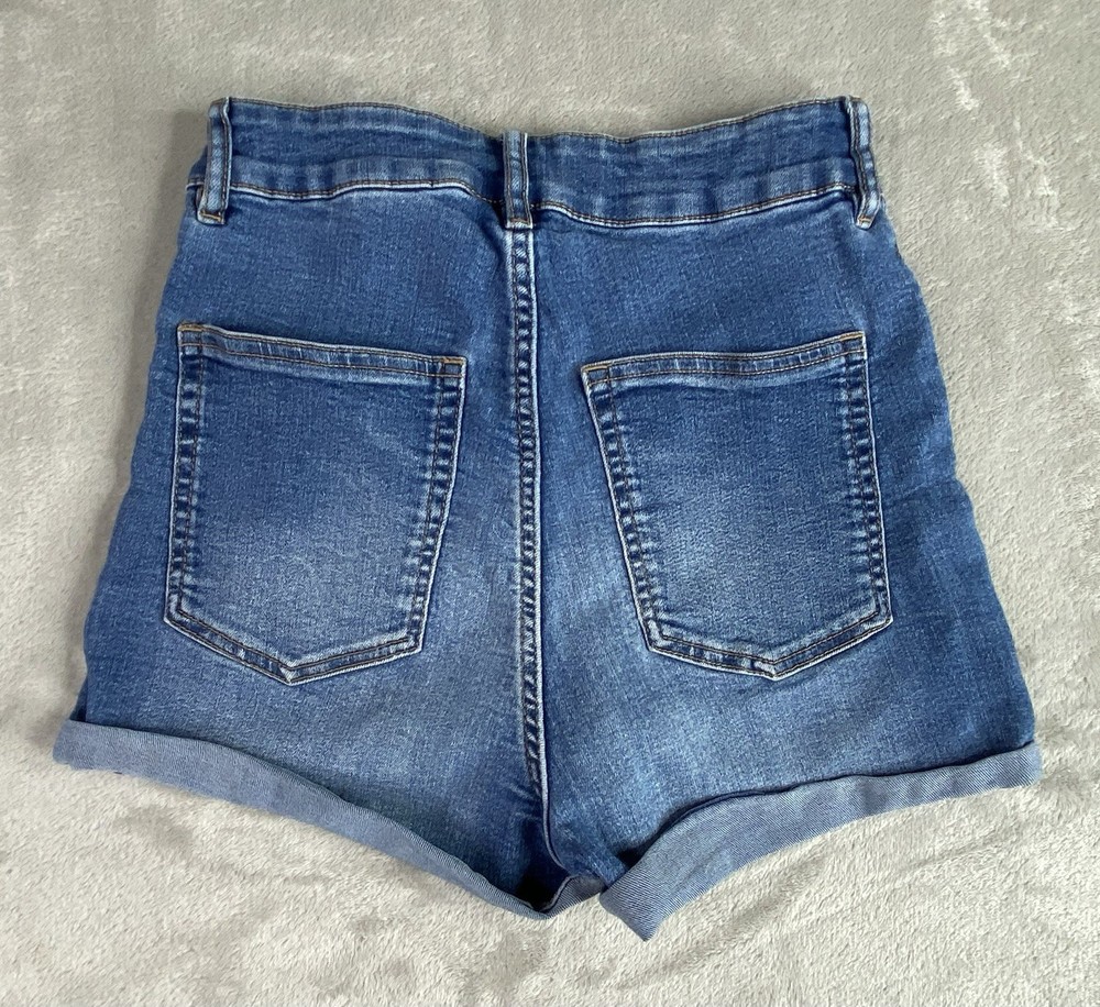 H&M Divided Women’s Cuffed Blue Denim Jean Shorts Size 4 Mid Rise. Condition is Pre-owned - Good. Shipped with USPS Ground Advantage.