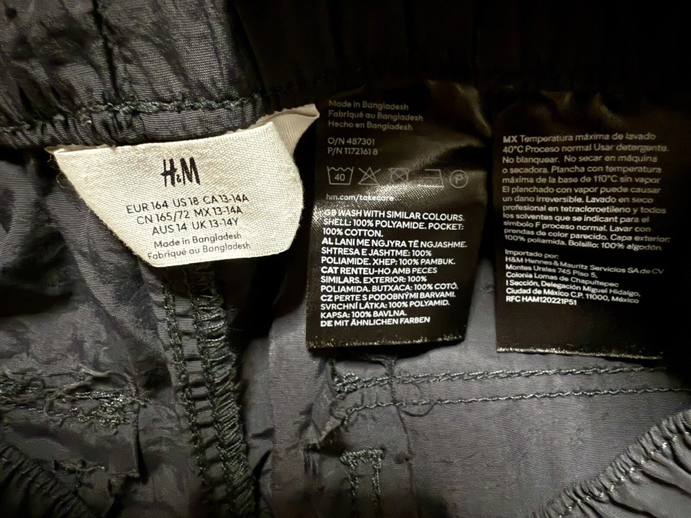 The product is a pair of gray cargo parachute pants for girls, designed by the brand H&M. These pants are made from nylon material and are size 18. With a stylish and practical cargo style, these pants are perfect for active girls who want a comfortable and durable clothing option. The H&M Nylon Kids Parachute Pants offer a trendy and functional choice for girls' everyday wear.