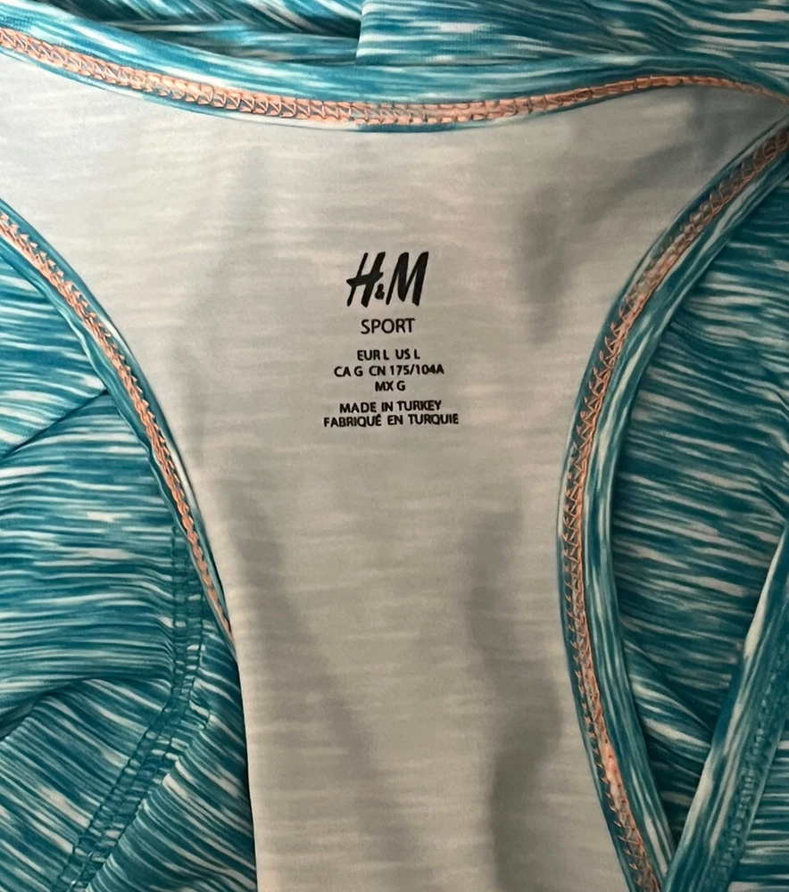 H&M SPORT Women’s Large Blue TANK TOP Racerback Workout Running Yoga Gym Jog.