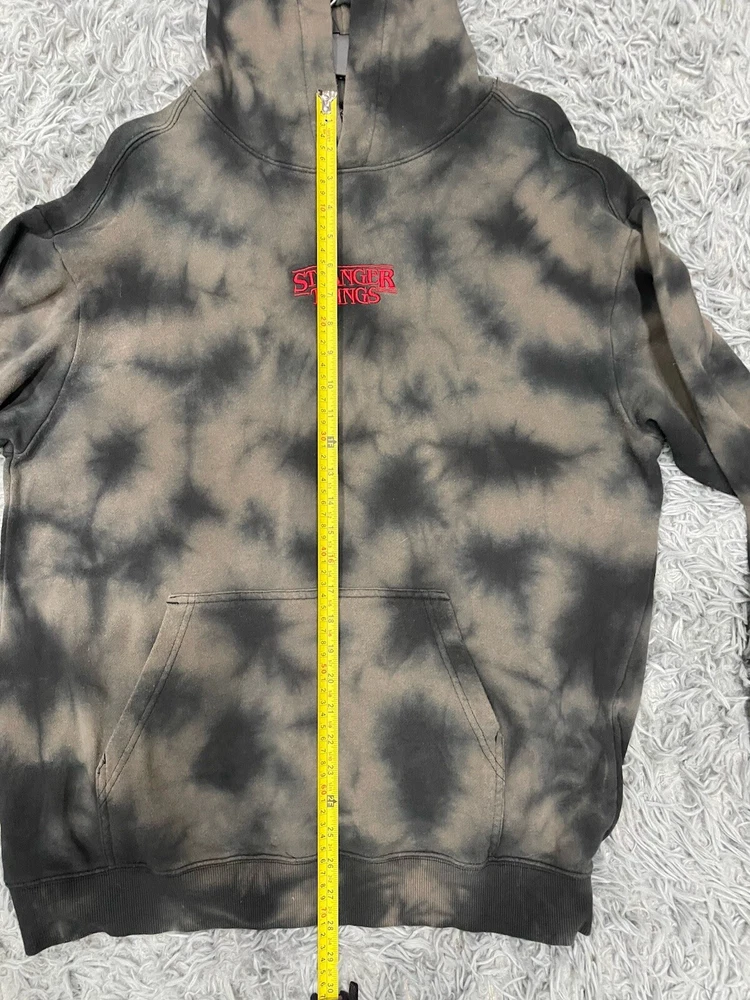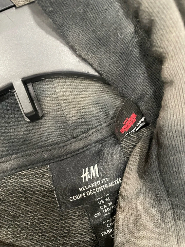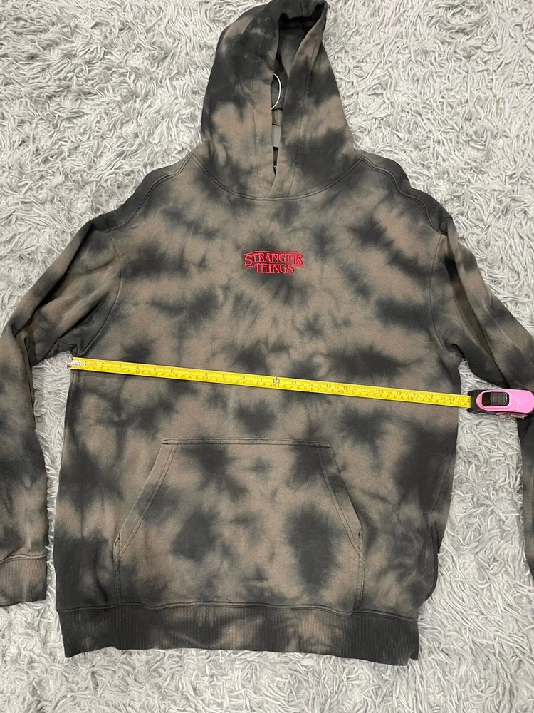 Get ready to rock the H&M Stranger Things Hoodie in style! This unisex hoodie is perfect for any occasion, whether you're hitting the gym or just lounging around. With a chest size of see photos, this regular fit hoodie is made of a comfortable blend of polyester and cotton materials that are machine washable for easy care. Featuring a multicolor tie-dye design with the H&M logo accents, this pullover hoodie is a must-have for any fan of the popular TV show. The long sleeve hoodie comes in size medium and is perfect for both men and women. Don't miss out on this amazing piece from H&M! READ, has a little piling. Can’t see in photos.