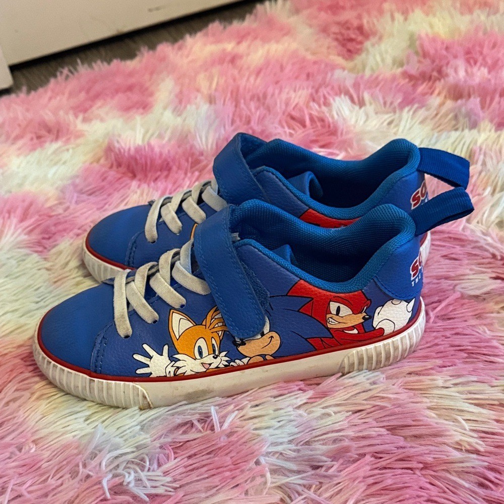 Bright blue sneakers featuring playful character designs. Ideal for active kids. Stylish and comfy.